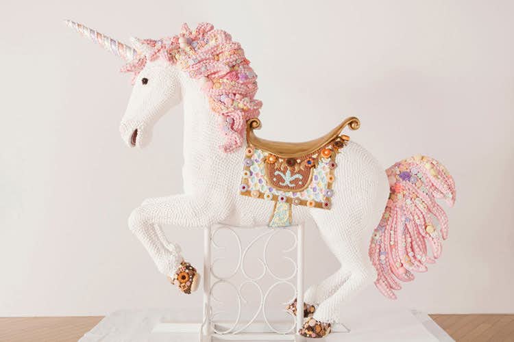本展では、オランダの絢爛豪華な宮殿を忠実に再現した「パレスハウステンボス」を舞台に、スイーツでデコレーションされたアート作品200点以上が集結。宮殿の内装を生かしたお菓子の美術館や晩餐会、スイーツアクアリウムなど、11のエリアに分かれた展示構成で、なかには全長約2メートルのお菓子のユニコーンも登場する。