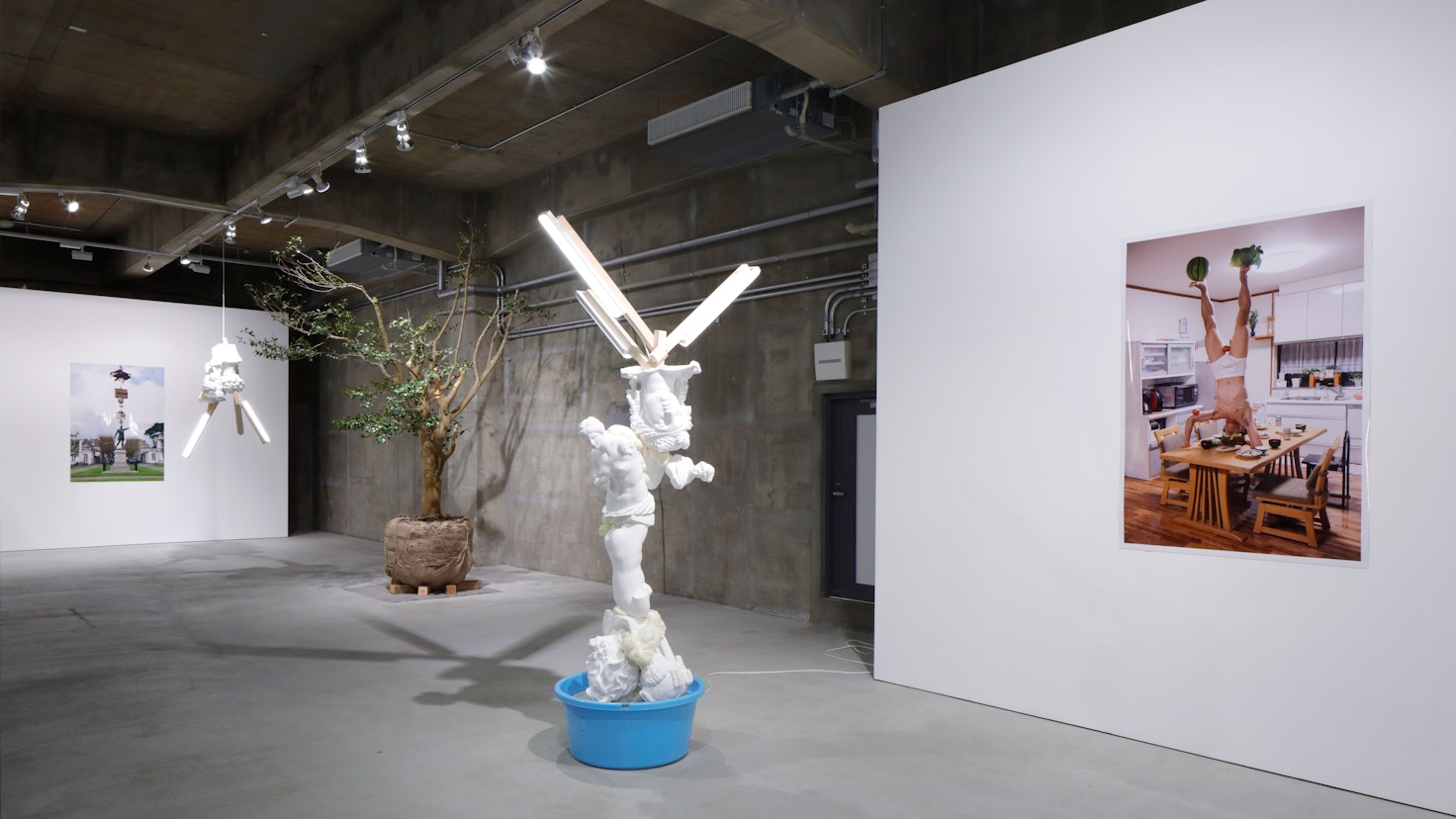 本展では、プライベートをパブリックな場に表出させることで日常的な観念を破壊し価値観の転換を迫ってきた西野が、屋外や美術以外の文脈を持つ様々なデイリーオブジェクトを屋内空間に設置。屋内への搬入が悩ましいヘビー級の巨木、公道を走っていたはずの車両の断片、自宅にある家具や家電といった様々な日常的な場にあるものが、本来あるべきコンテクストを剥奪されギャラリー空間に構成されたとき、その異物性が姿を現し、独特な空間をつくり上げる。