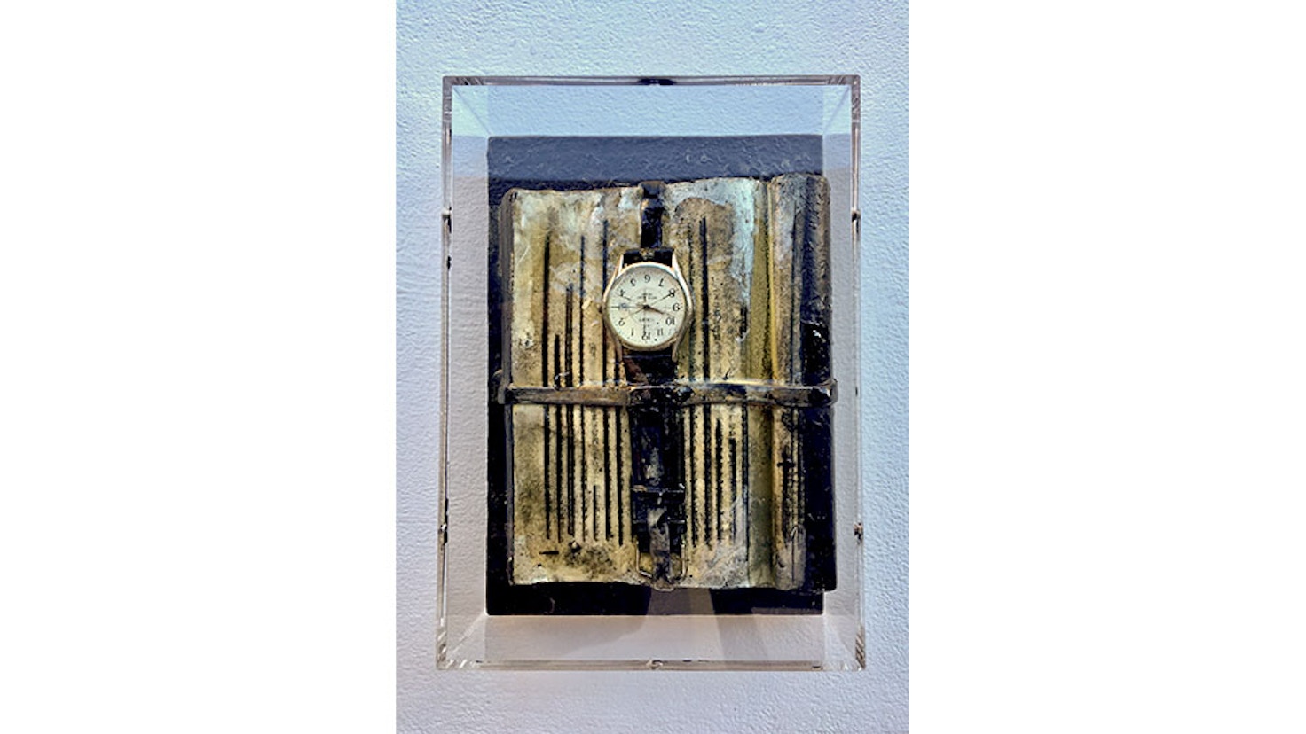 国島は1937年愛知県生まれ。60〜70年代にニューヨークやロサンゼルスなど米国を中心に活動。帰国後は愛知に戻り、岡崎市にアトリエを構える。代表的な作品に、何層にも重ねたアルミニウムに、自然石やブロンズなどを組み込む「積層」シリーズ、樹脂や鉛を用いて、本や鉛筆、絵具、時計といった身近にあるものを自身の記憶とともにに封じ込めた「Wrapped Memory」シリーズなど。80歳を過ぎた現在も精力的に作品制作に取り組んでいる。