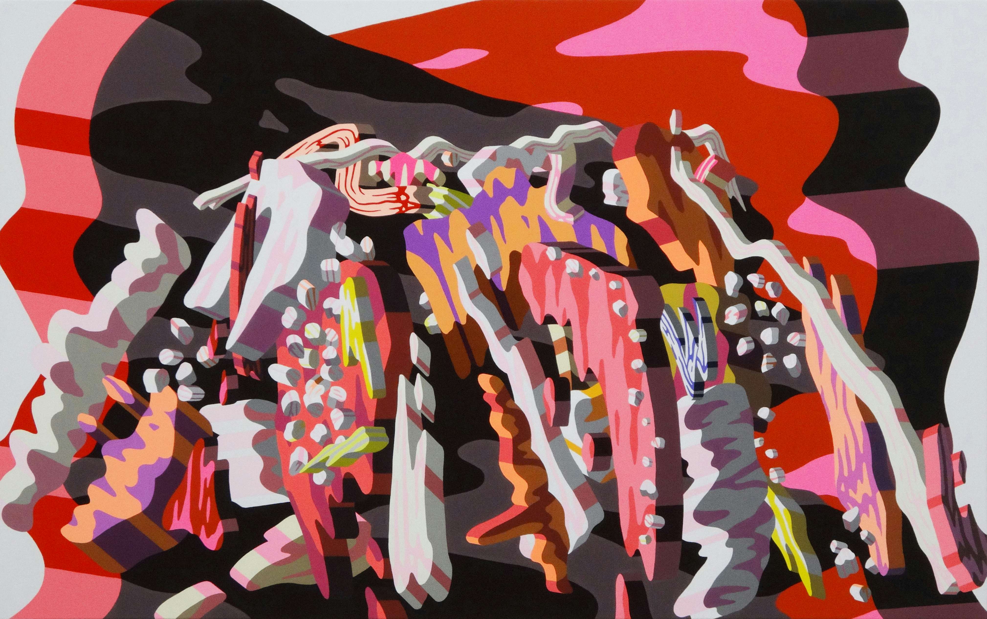 視覚でとらえた物事が流動的に変化する錯視の体験をもとに、ポップなモチーフを2次元と3次元の間を行き来させる仕掛けと鮮やかな色彩で、鑑賞者の視覚意識に揺さぶりをかける山口。本展では、古来から多くの作家が主題としてきた富士山に、独自の感性を持って挑んだ新作を発表する。