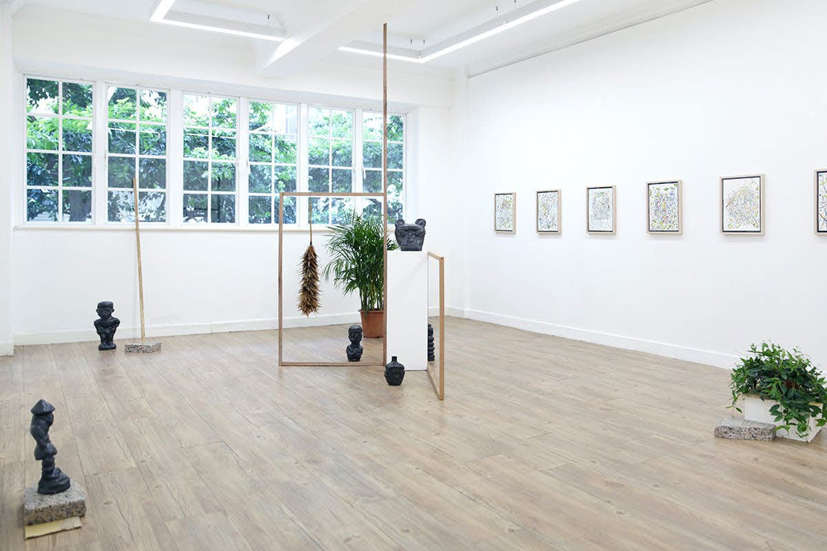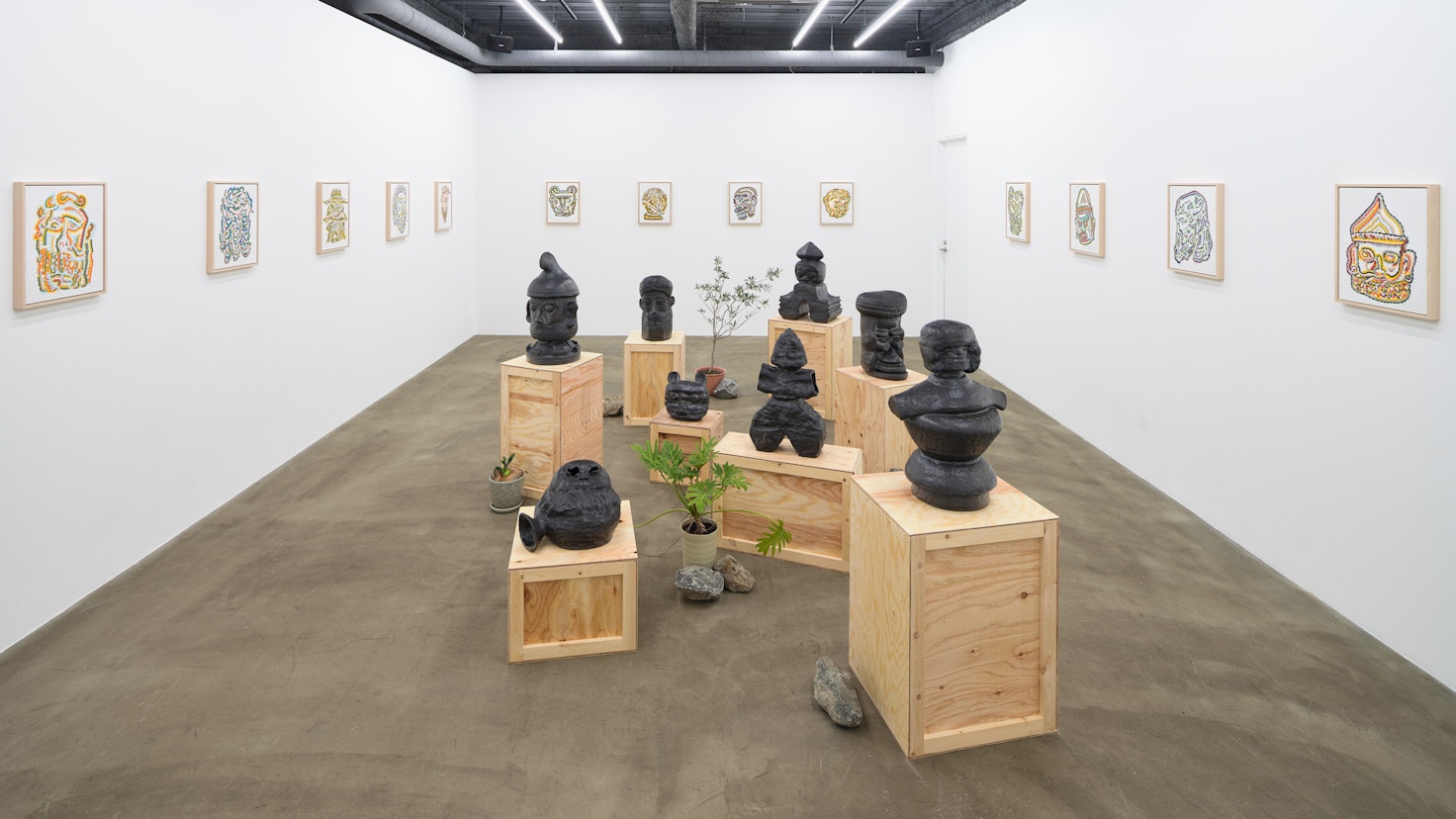 本展では、「偶像のポートレイト」を特徴的な凹凸で描いたペインティングシリーズの新作に加え、セラミック彫刻や水彩ドローイングなど約40作品を発表する。