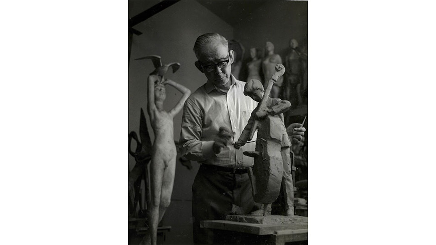 村田勝四郎(1901〜1989)は大阪生まれの彫刻家。東京美術学校(現・東京藝術大学)に学び、渋谷区元代々木町にアトリエを構え、渋谷区立松濤美術館に多くの作品を寄贈するなど、渋谷と深い縁を持つ。