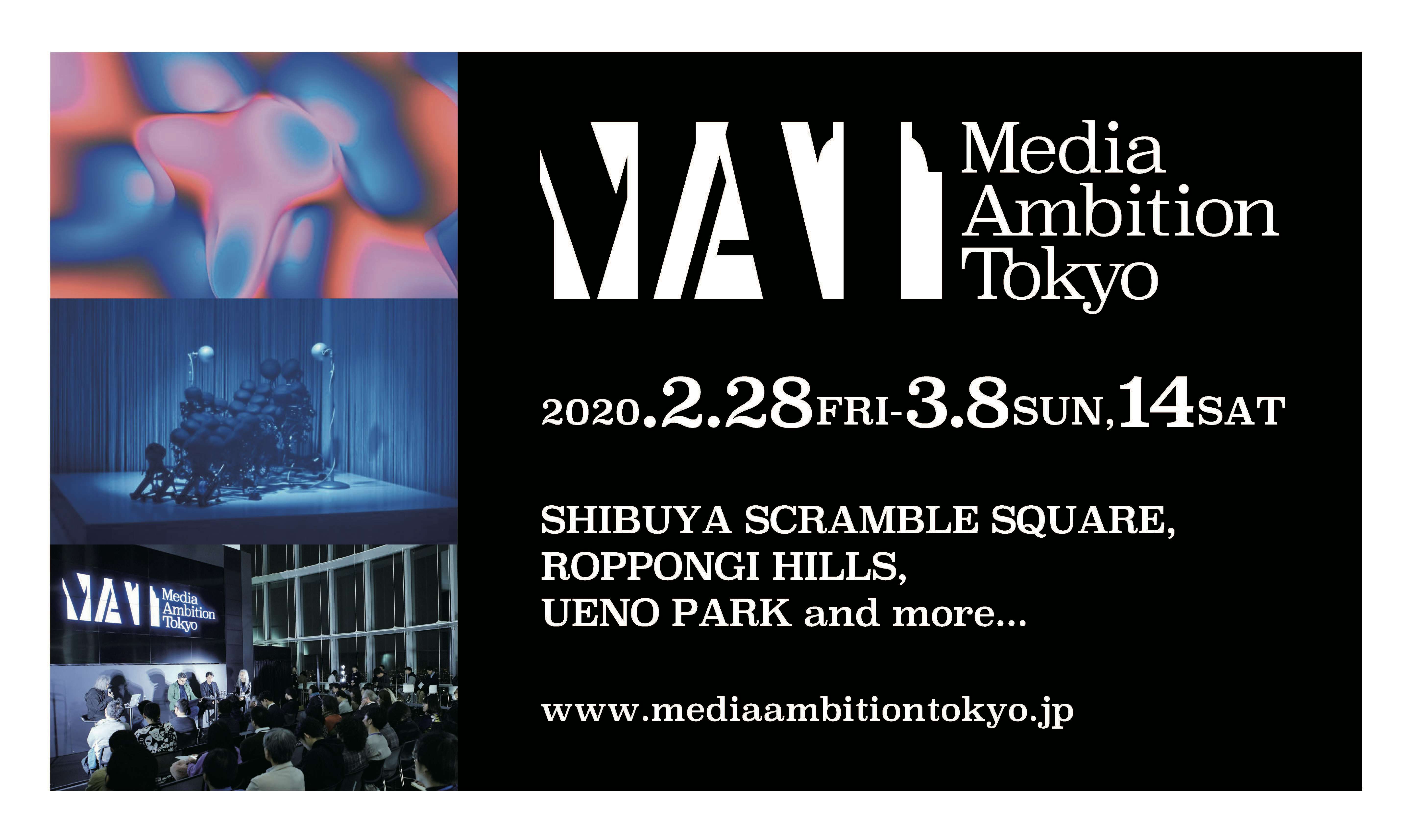 「Media Ambition Tokyo」は、テクノロジーアートを実験的なアプローチで都市実装するリアルショーケース。国内外の様々な分野のイノベーターや企業、イベントが参画し、都内を舞台に、最先端のアートや映像、音楽、パフォーマンス、トークショーなどの多彩なプログラムを展開する。