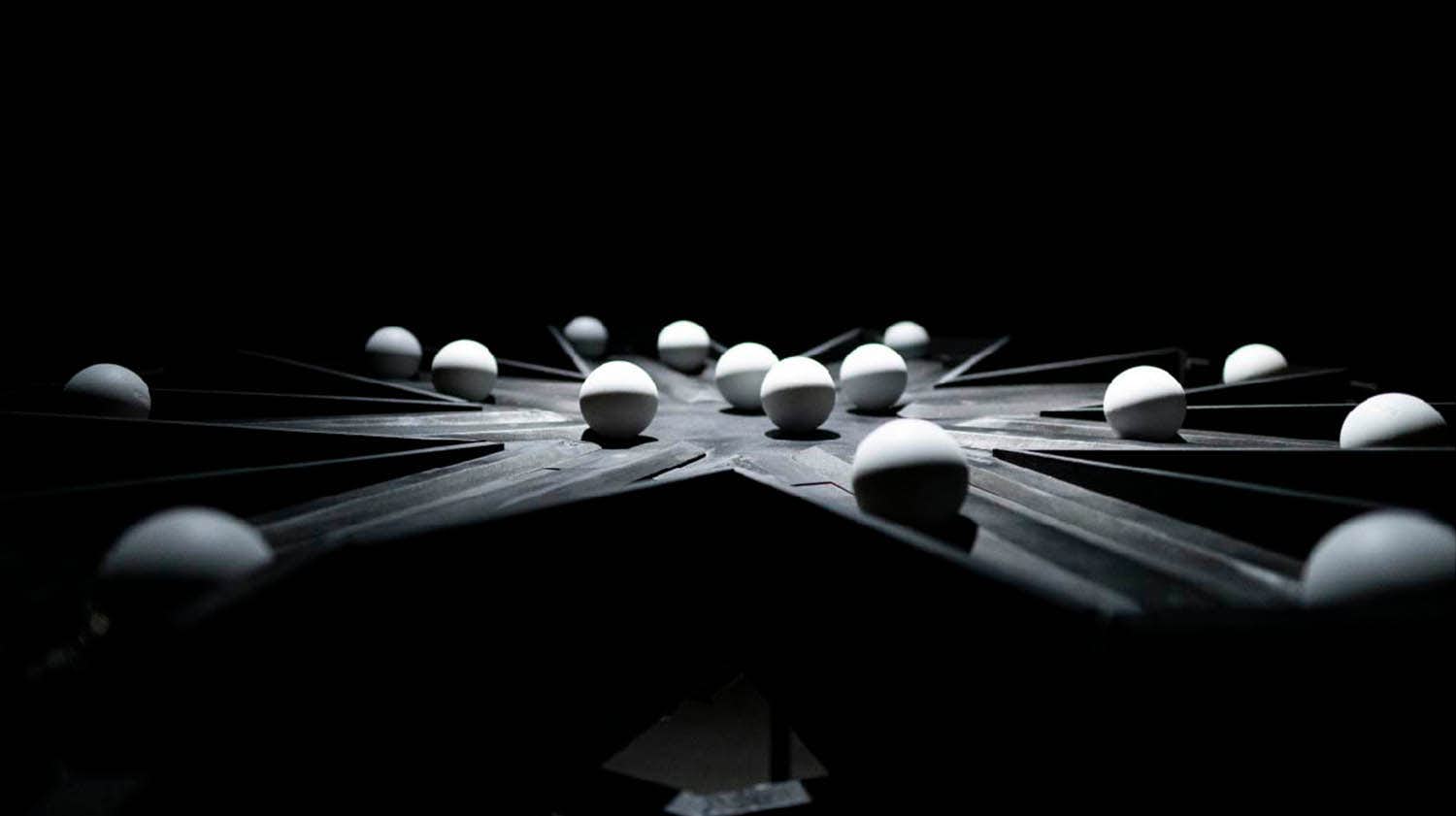 いっぽう渋谷キューズでは、落合陽一が、物理的制約のないデータの世界と制約ある質量の世界の越境し、「質量」を思索する作品《質量に保存する、制約を与える、有限の存在にする》を発表。また脇田玲が、ある瞬間の風を可視化した彫刻を、シュルレアリズム的なインスタレーション《Moment(horizontal version)》として再構築する。