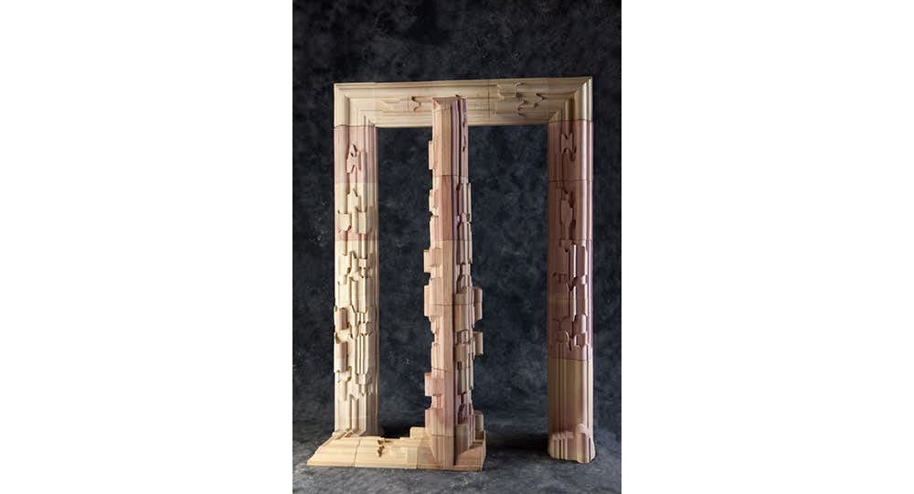 神話性、象徴性を制作におけるテーマのひとつとしたカルーソ。初期では、自身のルーツであるシチリアの記憶と結びつけた装飾的な器物を手がけたが、次第に古代ローマやギリシャ、エトルリアの遺跡などを思わせる壁面や柱、門などの形態制作を通じて、古代と現代を結ぶ空間の構築へと向かっていった。