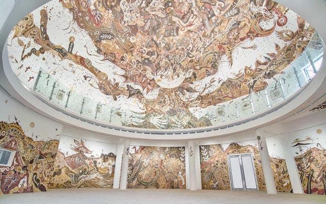 ここ数年間の淺井は、ユーラシア大陸を巡る旅の道中に描いた数多のドローイングや、中国・重慶で手がけたドーム状の天井壁画、北アイルランドや宮城県石巻市、福島県猪苗代町での泥絵などに取り組み、各地での制作過程で、「野生」について多くを学び、思考を深めてきたという。