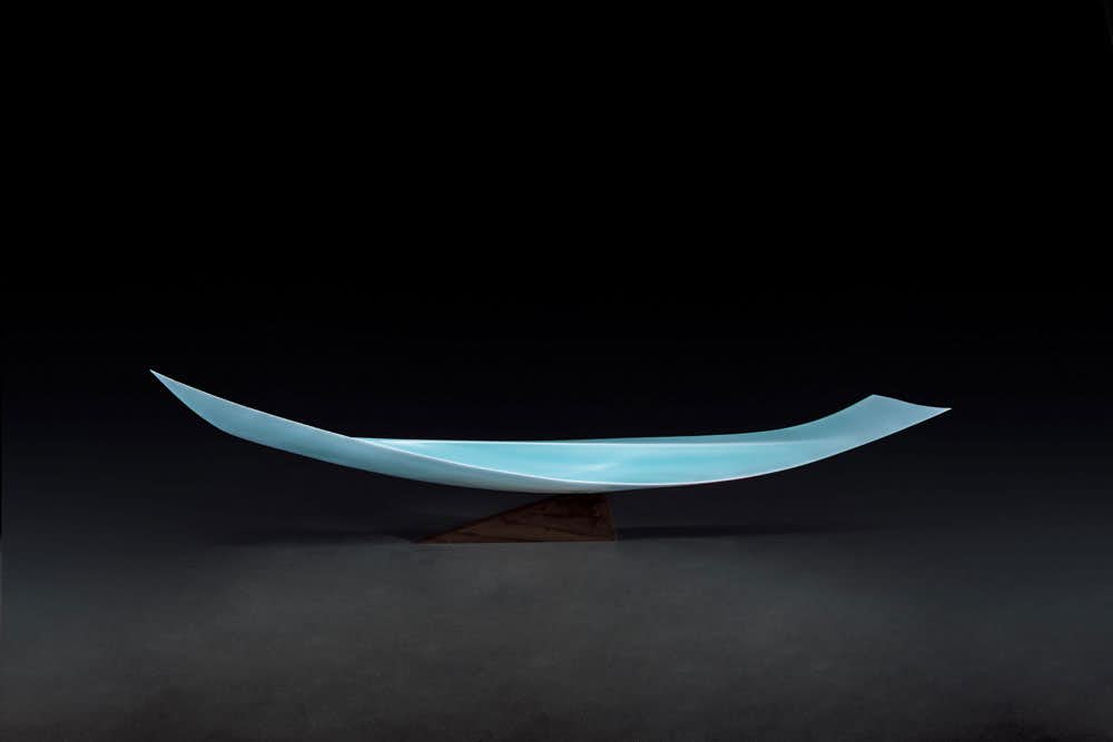 深見は1947年京都府生まれ。67年に日展に初入選し、本格的な作家活動を始める。80年に圧力鋳込みによる青白磁の作品を発表。85年には、イタリア・ファエンツァ国際陶芸展でグランプリを受賞した。以来、多数受賞し、国内のみならず海外でも高く評価されている。日本の現代陶芸を世界に広めた先駆的な作家のひとりであり、泥漿(でいしょう)圧力鋳込みを用いて、青白磁では類を見ないほどの大規模な彫刻的作品を生み出している。