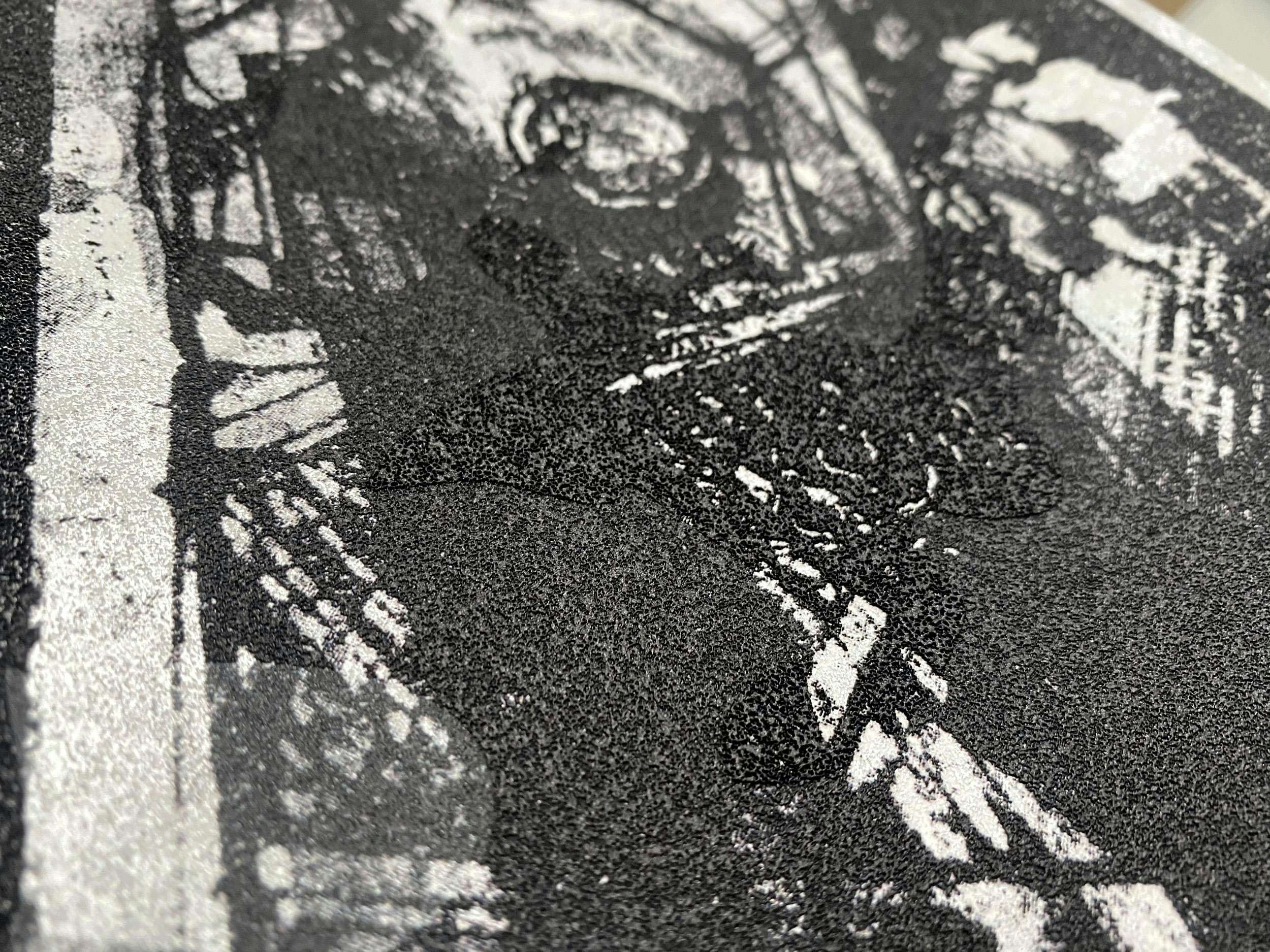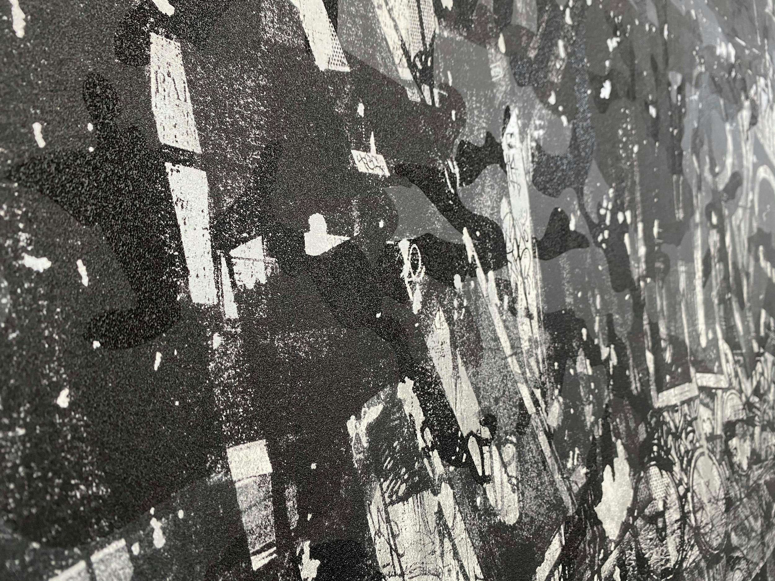 制作にあたり、京都の⽼舗印刷会社「サンエムカラー」の協⼒を得た新シリーズ「WALL Stanza」は、カメラによって撮影され印刷された、たしかな写真であると同時に、写真という物質的存在そのものに焦点を当てた作品であり、あるいは視覚イメージの剥がれ落ちたネイキッドなグラフィティでもあると言う。
