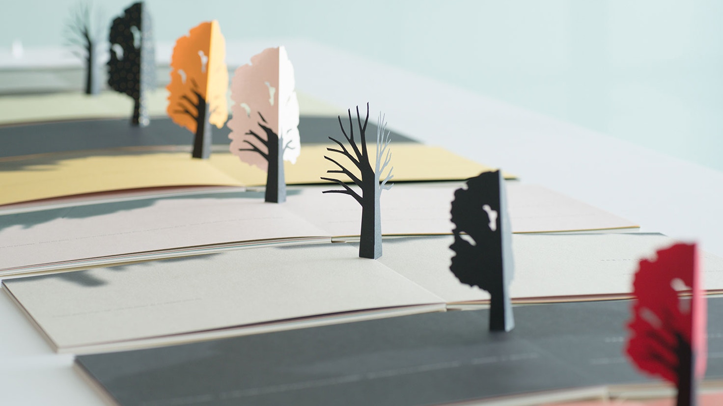 本展は、アメリカ時代の実験的な作品から、音楽、ファッションでの仕事、絵本の試作やスケッチまで、駒形の初期から現在までの足跡をたどる初の展覧会。手に収まる小さなサイズ、少数の人々とささやくような関係性から生み出される作品を大切にしてきた駒形のアイディアや、その絵本表現の特徴である切抜きや変形ページの魅力を立体的な展示で紹介する。