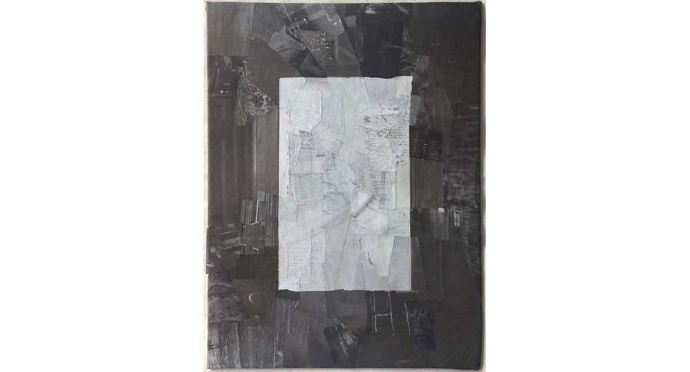 いっぽう「ページ」は、白黒の新聞画像から見つかったフォルムを使用した、英国の標準的な文庫本のサイズの作品。黒い背景に配置された一見空白と見えるページは、本の破れや汚れ、しわ、内容が判読不能または消去された部分など様々なレイヤーが重なり、平面と奥行き、前景と背景、コンテンツと空虚の間を彷徨う。