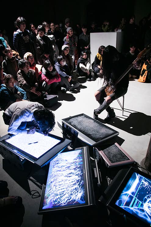 村田がパフォーマンスをはじめたきっかけは、コミュニケーションが上手くとれないことへのコンプレックスだったと言う。話す言葉が相手に上手く伝わらない、相手が何を言っているのか理解に時間がかかるなど、抑圧された言葉にならない声を、板に、モニターに、自身の背中に、「書くこと」「描くこと」「掻くこと」で表現してきた。