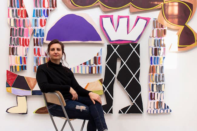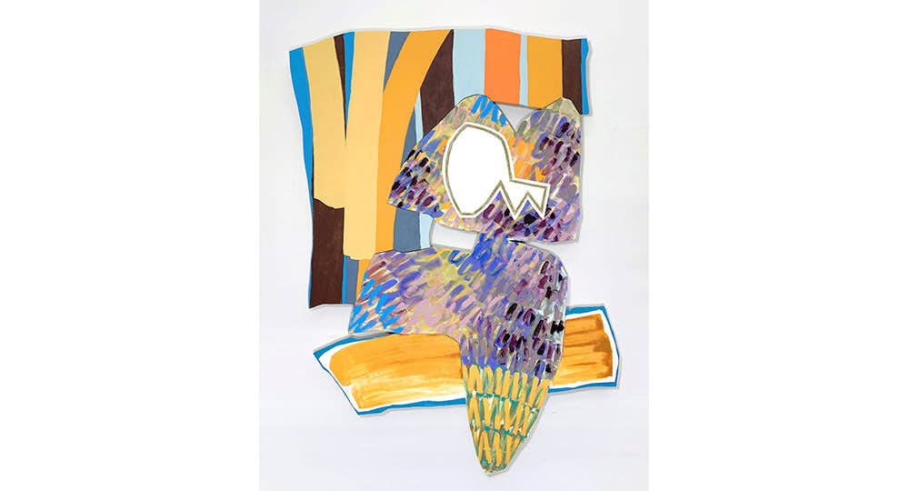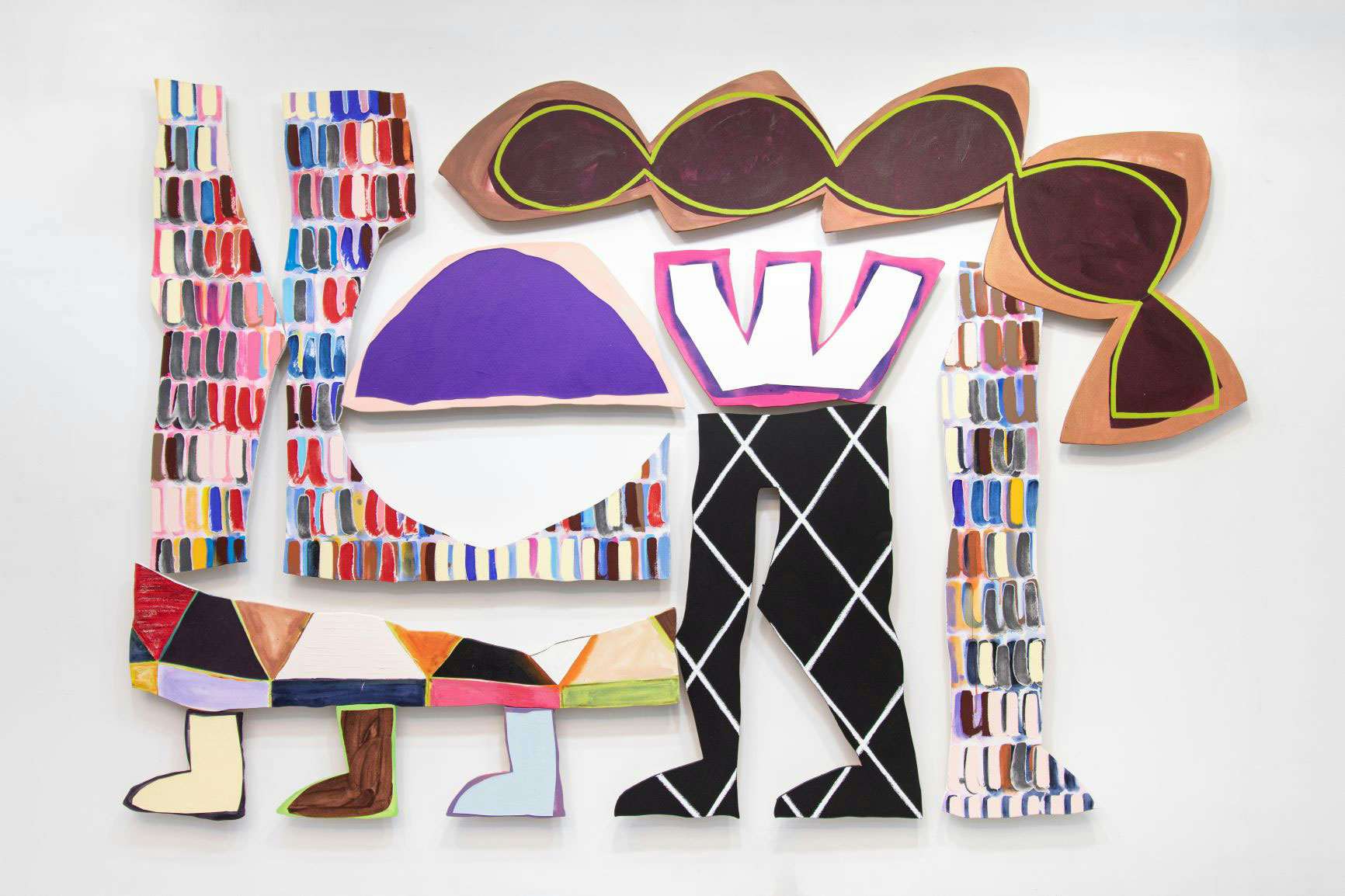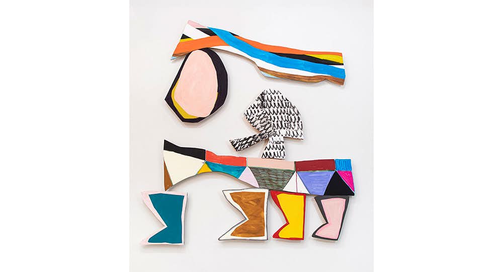 また伝統的な長方形の絵画と並行して、「Cut Outs(切り取り、切り抜き)」と作家自身が呼ぶユニークな形状のキャンバスをいくつも組み合わせた作品も制作。エリザベス・マレーを思わせる「Cut Outs」は、平面でありながら立体作品としての表現も持ち合わせている。
