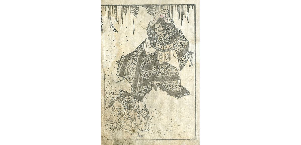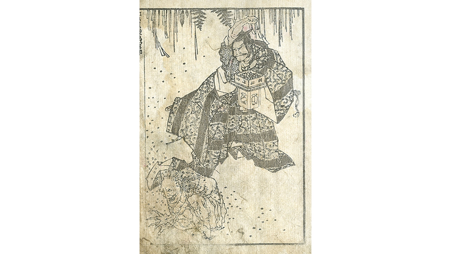 見どころのひとつとなるのは、壮年期の北斎の優品《万歳図》。正月中に来訪する2人1組の芸人「万歳」を描いた同作品は、背景にある門松を長く途中まで描いて画面に奥行きを持たせる北斎の技量を見ることができる。