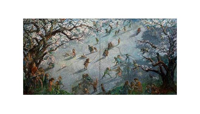 笠間日動美術館では「桜」をテーマに、渡邊省亭や横山大観、中島千波らの日本画をはじめ、近代洋画の巨匠・藤島武二や、現代洋画壇で活躍する遠藤彰子らの作品を一堂に展示。日本画家、洋画家の眼を通して描かれたそれぞれの「桜」の饗宴を見せる。