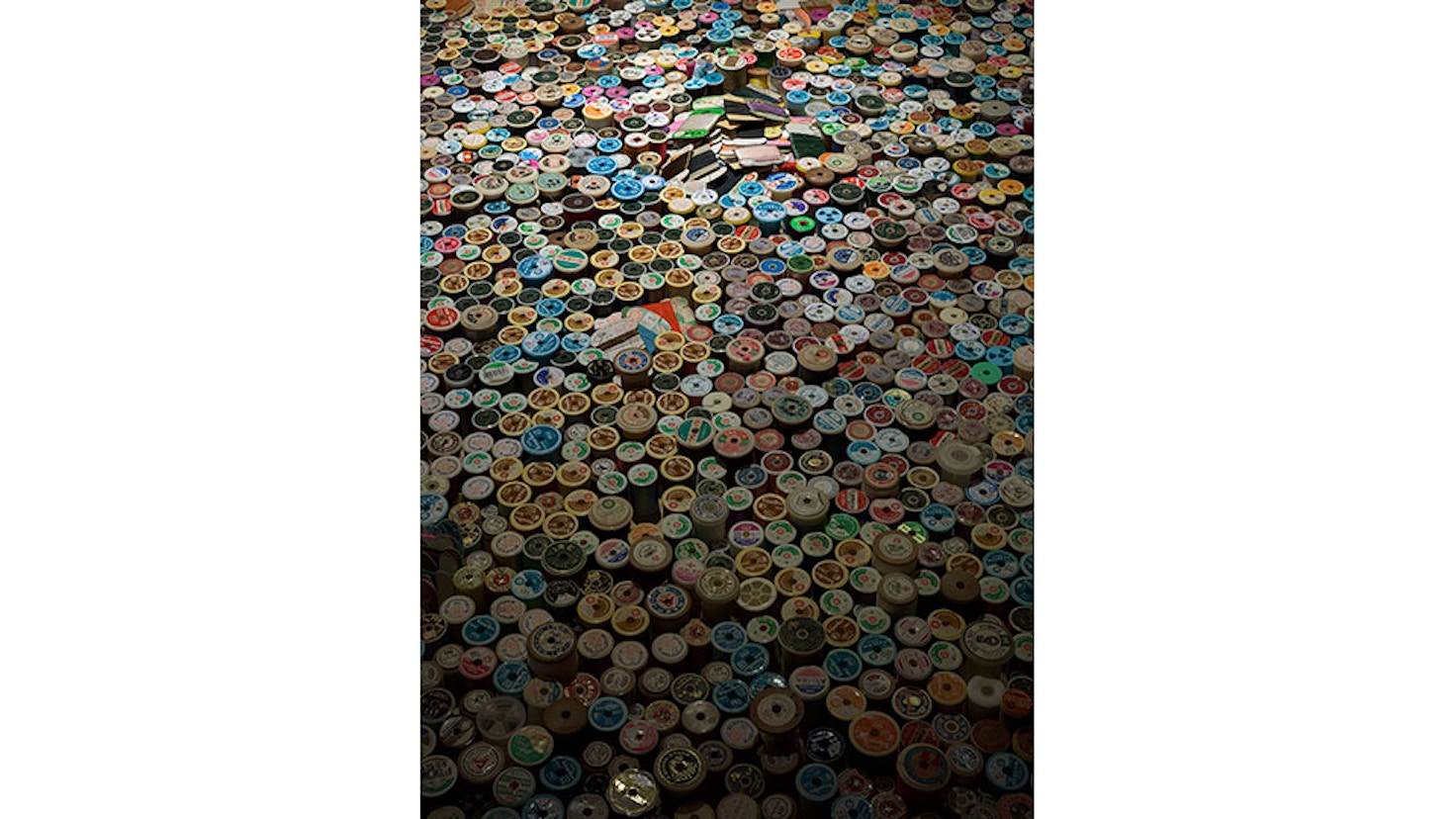 古代ギリシア語の「花摘み」を語源とする「anthology(アンソロジー)」。本展では、2019年秋より募り、全国から寄せられた7000個あまりの糸巻きを用い、新たに紡ぎ生まれたインスタレーション作品を展示。布を支持体に、作家自身のインスピレーションに従って針を進めることで完成する刺繍の造形は、おびただしい数の針目によって立体化され、手仕事ならではの迫力に満ちた空間をつくり出す。