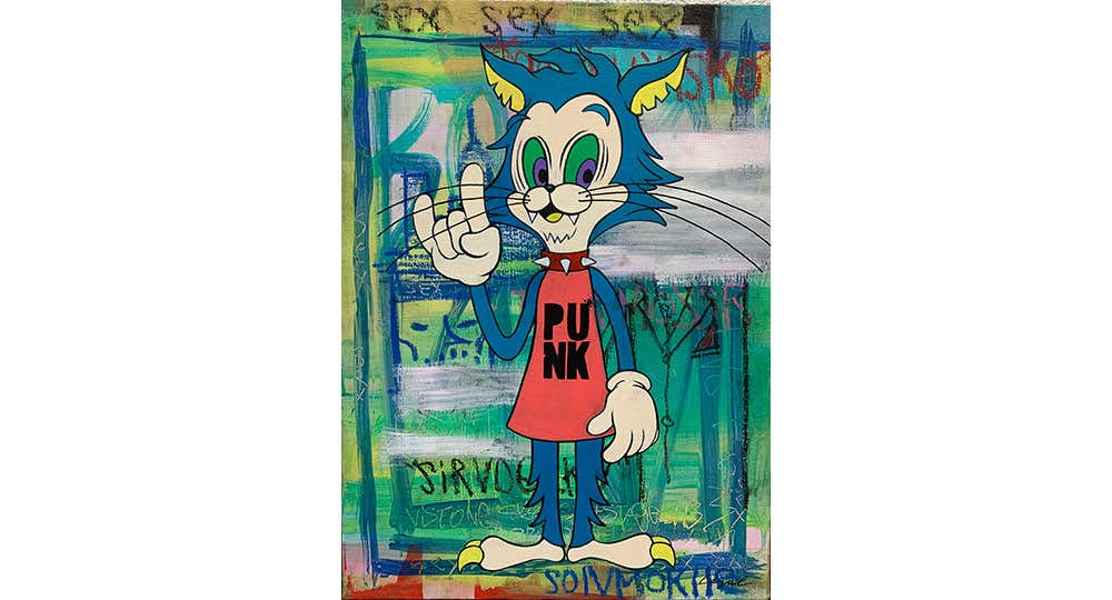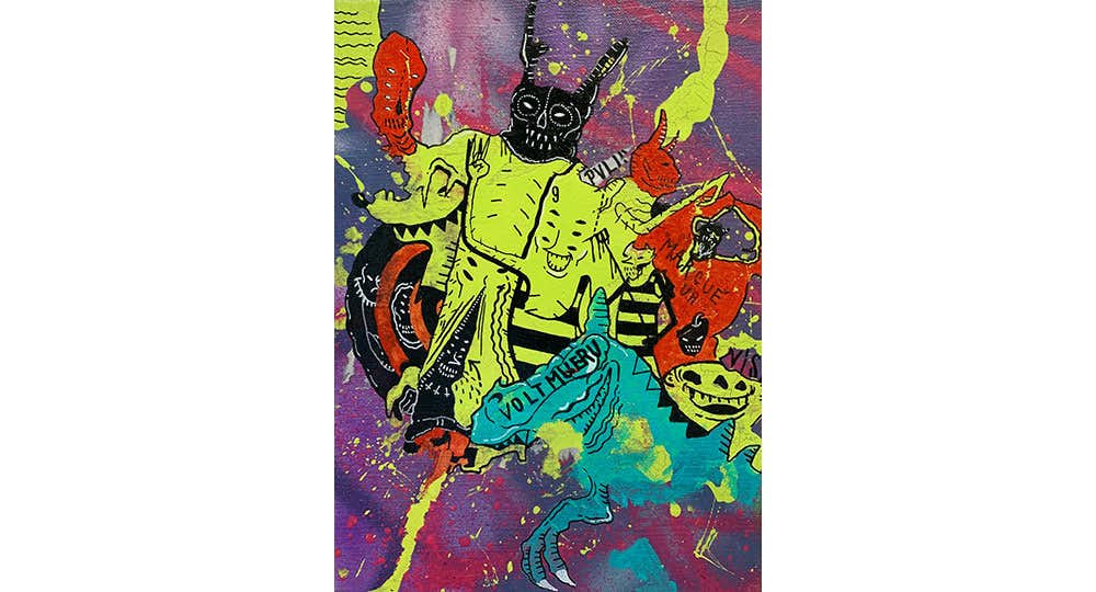 本展では、普段の巨大な壁画とはまた異なる顔を見せる、CAZULの新作も含めたキャンバス作品を展示。CAZULの脳内で繰り広げられる「常識が常識ではないハチャメチャでユーモラスな世界観」を披露する。