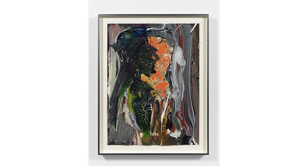 サリバンのペインティング作品は、様々な色の顔料で着色された樹脂を使い、複数のレイヤーとジェスチャーをひとつの平面へと圧縮する独自の技法を用いて制作される。いまも進化を続けているこの技法は、樹脂が滞留し、筋をなし、混ざり合い、移ろい、その流れによって極めて薄い空隙を埋めていき、最後に「型枠を外す」ことで鮮やかな色彩と躍動的なリズムによる力強いコンポジションをつくり出す。そのいっぽうで、紙に描かれた作品は、樹脂によるペインティングから出たかたちをもとに、制作のプロセスを逆転させて生み出される。