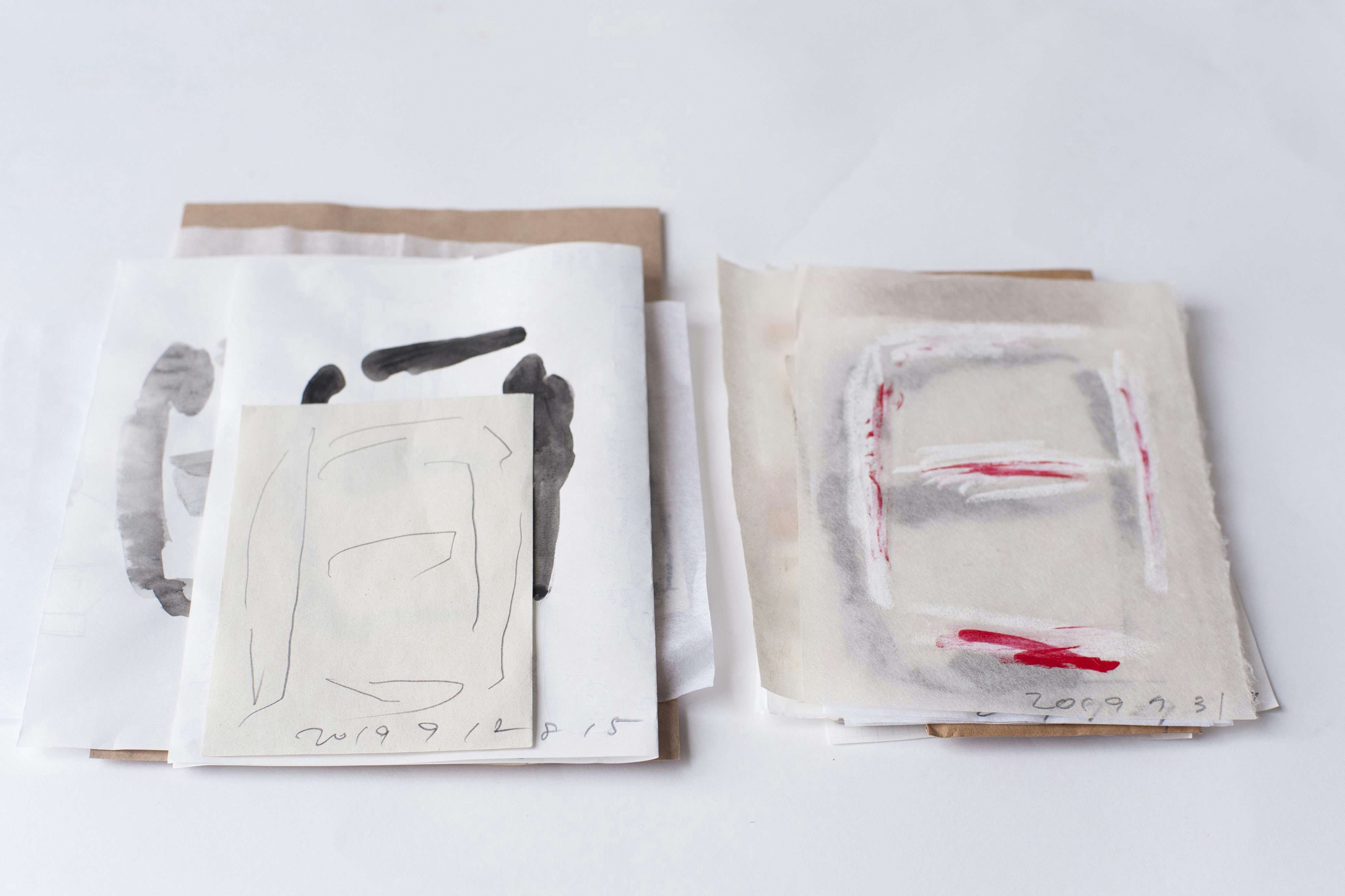 本展では、華雪が2017〜19年の一時期、毎日書いてきた「日」のほか、「水」(2019〜2020)、「鳥」(2016)の作品を展示。BLOCK HOUSEの「うつろう / Passing by」(2016)、「光」「花」(2018)とおよそ2年おきに展示を企画・開催してきた華雪が、今回「HARUKAITO by island」では初めて、東日本大震災後から制作する大作を発表する。