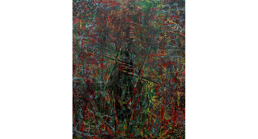 本展では、こうした独自の手法でつくられる絵画を、自身の構造と同じであるとみなす謝花の新作を展示。表面からは見切ることができない内部構造を持つ自らの分身を外部に存在させ、不可視である多くの存在への憧憬とその触感を確かめる作家の試みを紹介する。