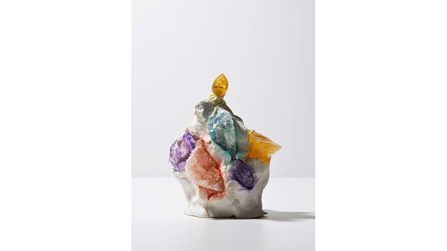 本展では、角田が収集を続ける「鉱物」をテーマに、鉱物そのものを活かした立体作品やそこから生まれた新作のペインティングを展示。浮き上がる手の跡がシンプルに美しく整い、滲み出るエナジーが心身を柔らかくほぐすような、不思議な魅力を持つ作品群が並ぶ。