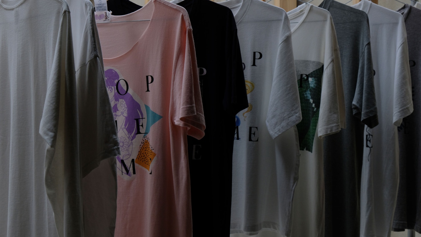 コロナ禍の状況のなかで、ギャラリーがどのように発信できるかという問いから始まった本展。持ち主の一部である着古されたTシャツに「STOP THE TIME」のイメージを「刷る」という行為によって、流れる時間のなかでのある瞬間を「引っかける」という。