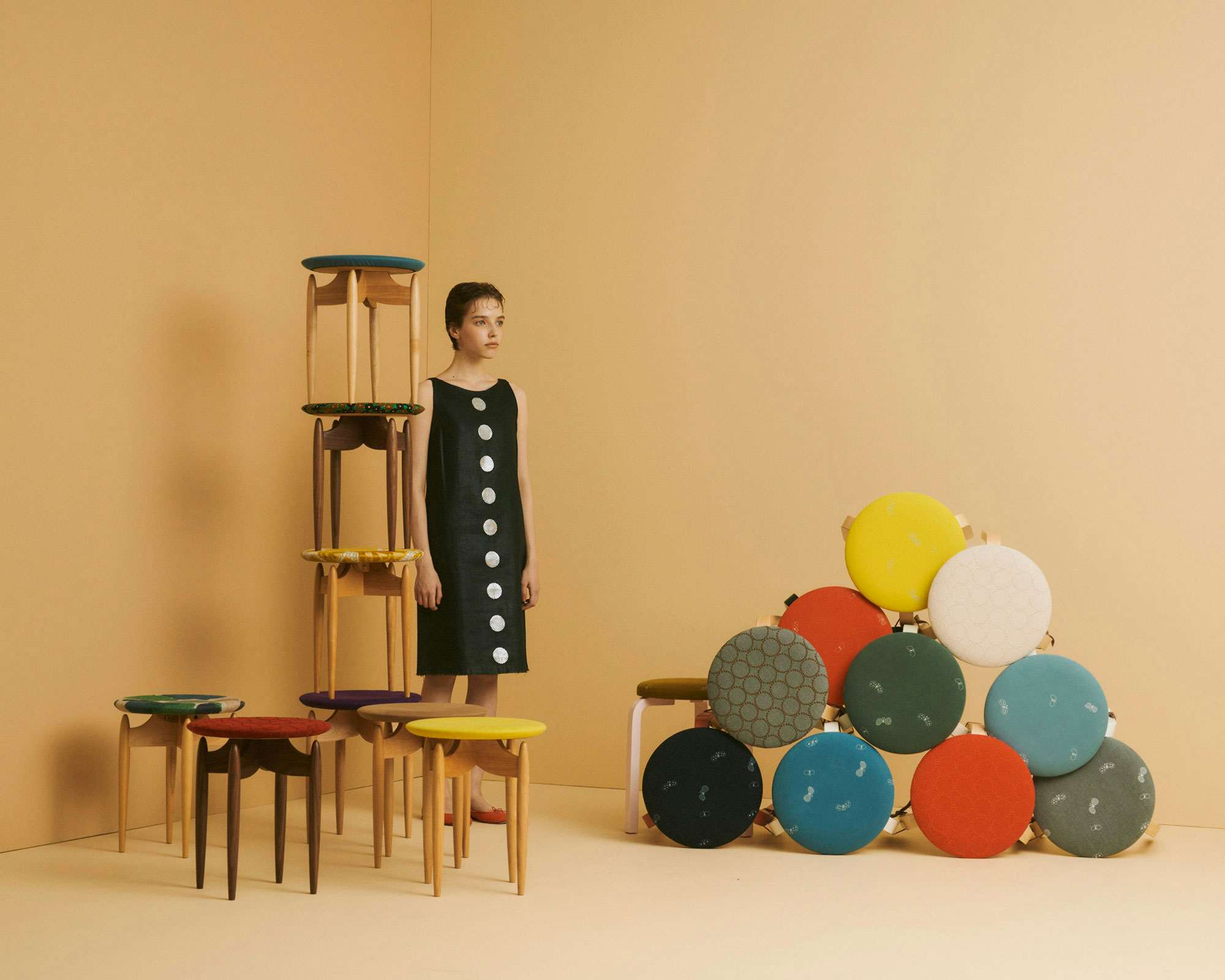 皆川がミナ ペルホネンの前身となる「ミナ」を立ち上げたのは1995年のこと。「せめて 100 年つづくブランドに」という思いでファッションからスタートした活動は、その後、インテリアや食器など次第に生活全般へと広がり、現在ではデザインの領域を超えてホスピタリティを基盤にした分野にまでおよぶ。