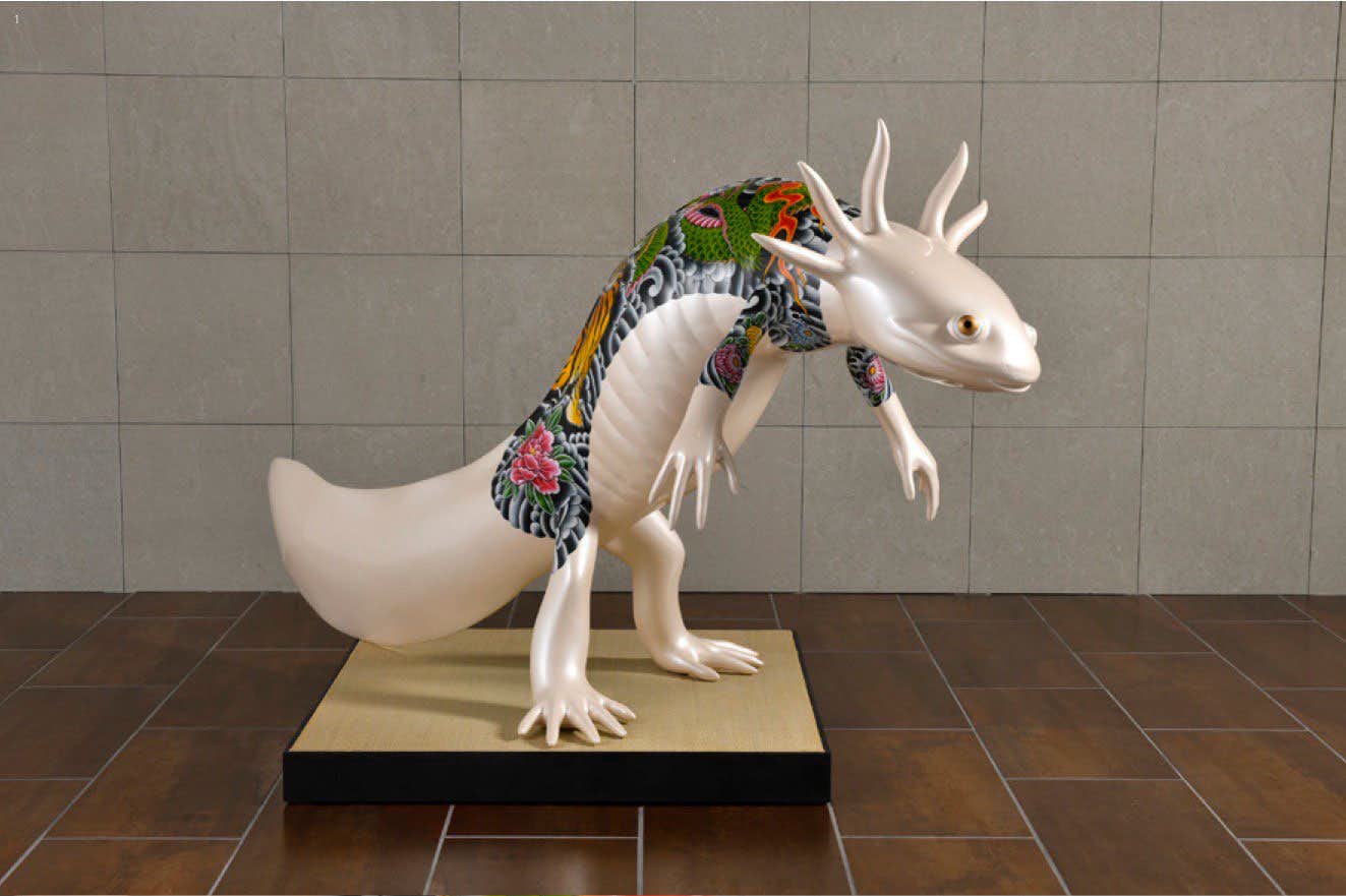 サンショウウオをメインモチーフに、造形・彫刻作品を制作する現代美術家・井上裕起の個展が開催されている。