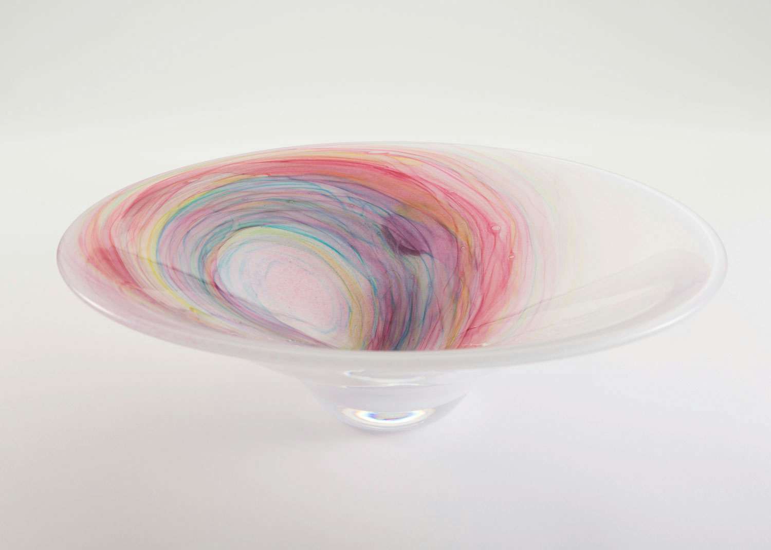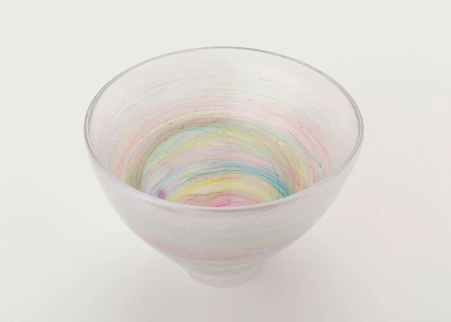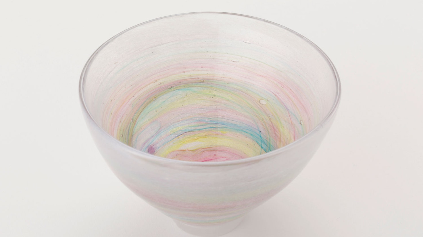 「私がガラスの中に感じていた『時』というキーワードは、過去、現在、未来が混在する無時制の世界だと気がつきました。ガラスは時の花となり時の波となり、無限に重なり合う色の層は記憶となり、ガラスの器という枠を超えて広がっていきます。どこまでも広がるガラスの内なる世界を一緒に楽しんでいただければ幸いです(イイノナホ)」。