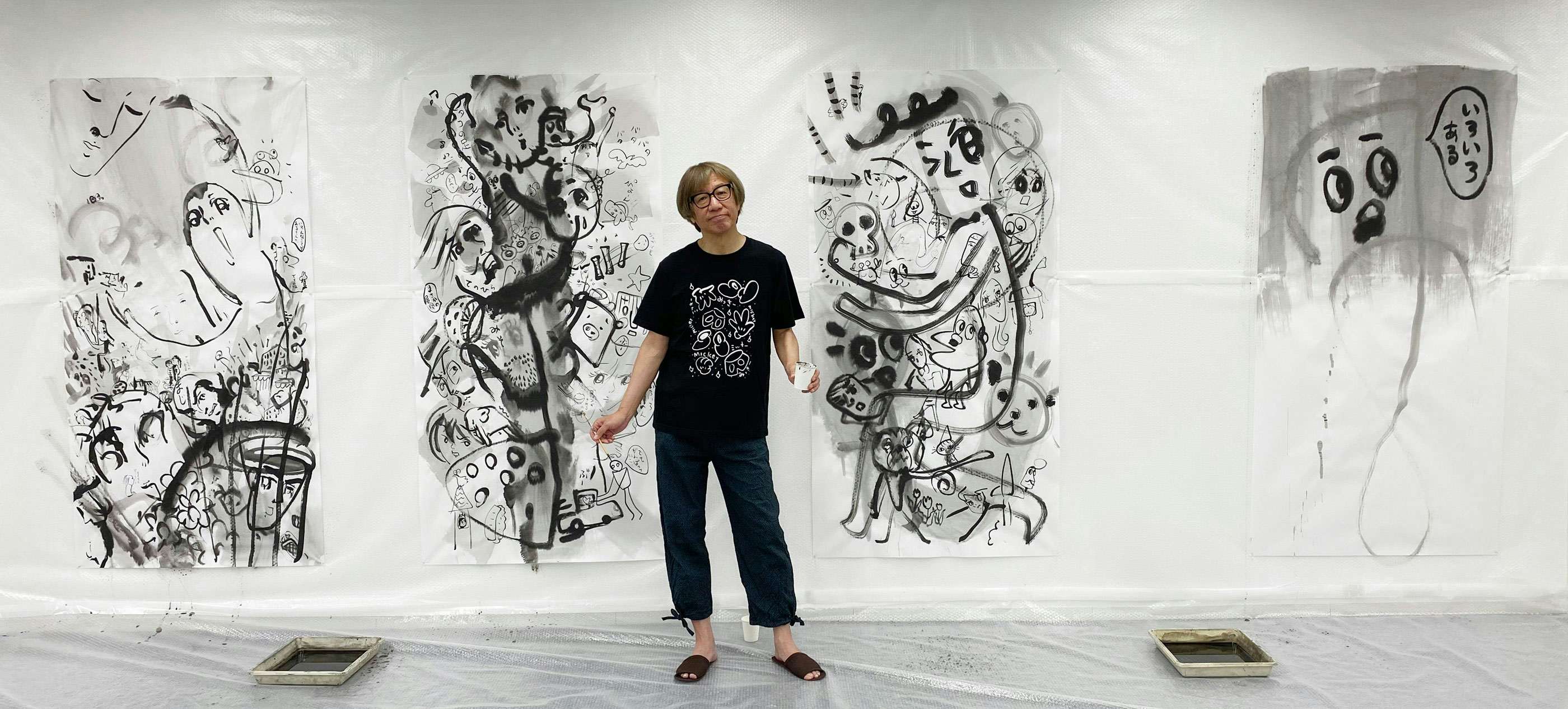 マンガ家として活躍し、アート作品も意欲的に制作しているしりあがり寿の新作個展が開催される。