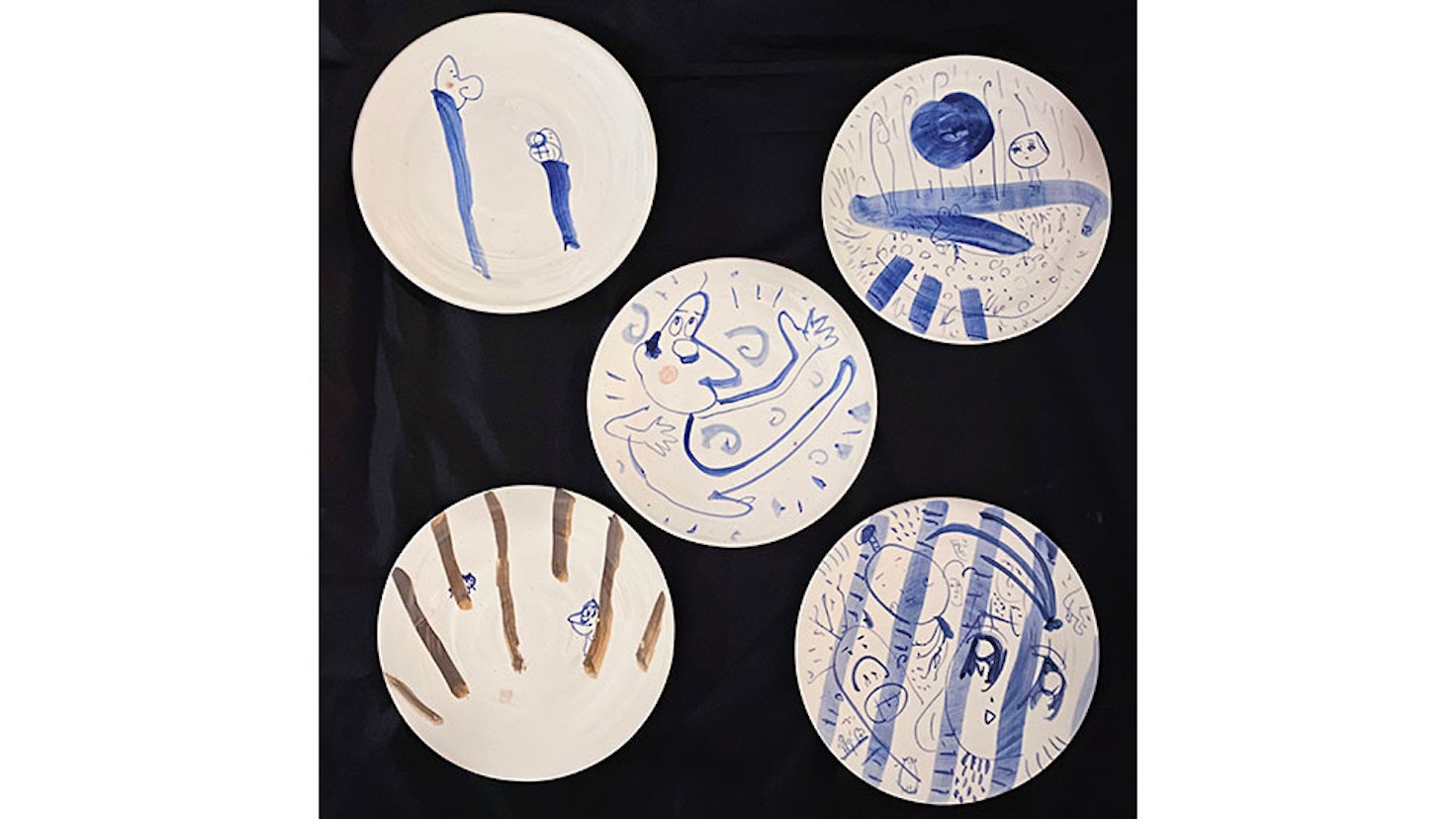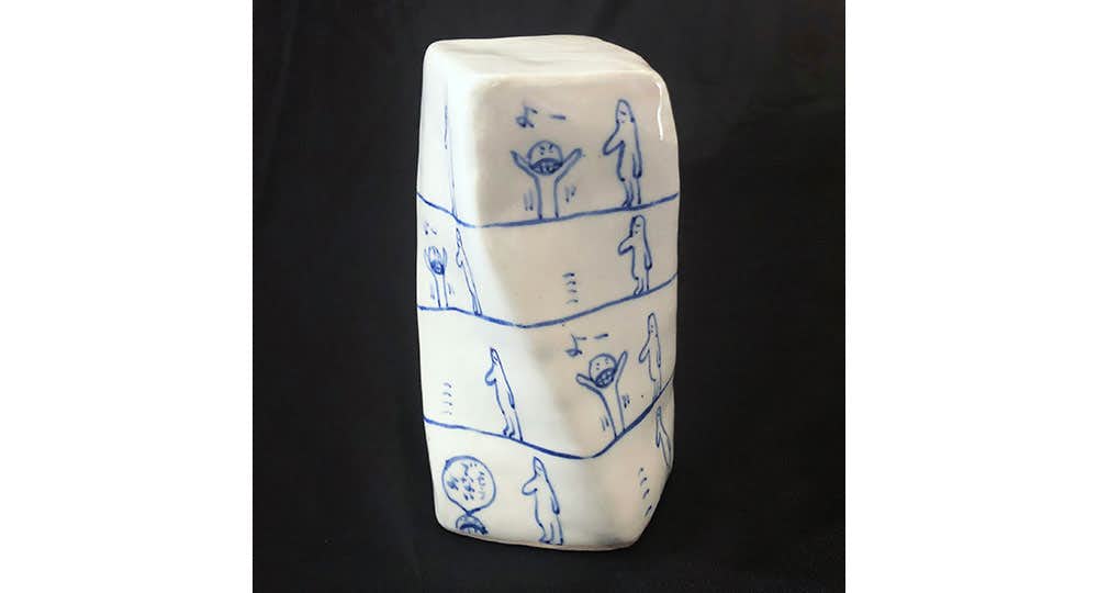 本展では、アクリル絵画やおなじみの墨絵、4コママンガを立体にした陶芸作品や初めて挑戦した飾り皿(協力:kamakura 山陶芸工房)など、遊び心にあふれた新作およそ100点を展示・販売。展覧会タイトルの「ゆるく、ひらく」には、張り詰めた緊張をゆるめて、希望に満ちた夏が来る、そんなわくわくした気持ちで楽しんでほしいという、作家の思いが込められている。