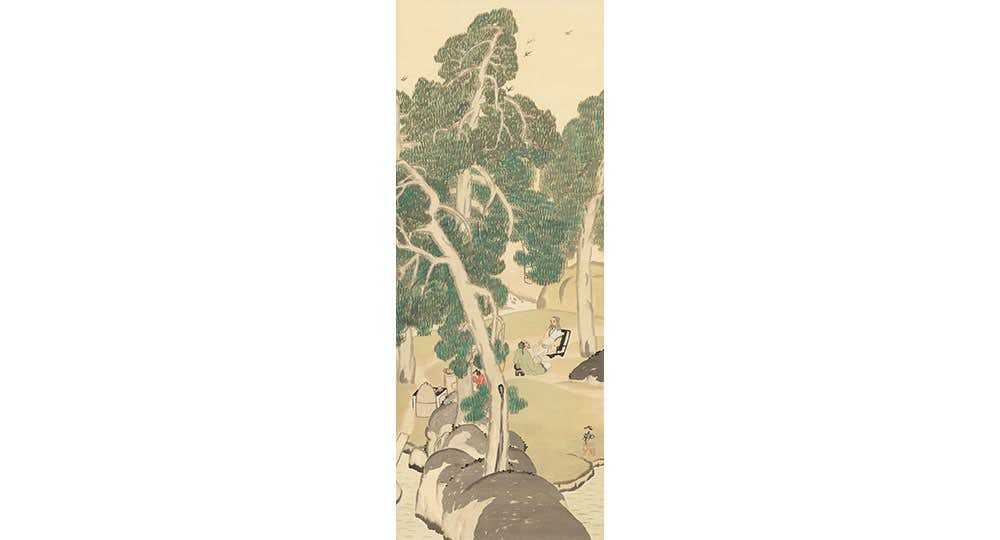 また大観の作品およそ30点と菱田春草の作品約20点に加え、同じ時代を生きた下村観山、川合玉堂ら日本美術院の画家などの作品も展示。2階のパノラマギャラリーでは、名作とともに日本画で実際に使用される画材道具、高価な原料からつくられる、そのままでも美しい顔料(絵具)などを並べ、日本画の材料と描かれ方について紹介する。