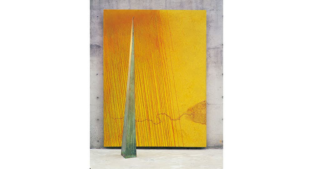 数年に及ぶ闘病生活を経て、85年に「風景は垂直にやってくる」という新たな表現形式をもって復活。翌年にはコミッションワークとして、ブリヂストン本社ロビーの彫刻《そのとき音楽が聴こえはじめた》を手がけた。2001年に国立国際美術館(大阪)で個展「饒舌と沈黙のカノン」が開催。茨城県日立市のアトリエで精力的に制作を続けた。19年8月23日に逝去。