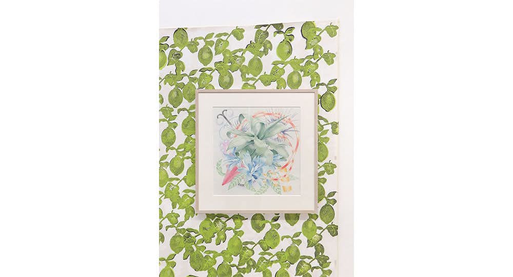 本展では、インテリアショップの店内を取り込むような升谷の手彫りのスタンプでつくられた壁紙のインスタレーション作品、日常からきっかけを得て描かれたペインティング作品などの新作を中心に紹介。インテリアとともに作品が配されることで、作家が日常のなかから何かを見出し、その先に作品表現があることを垣間見れる展覧会になると言う。
