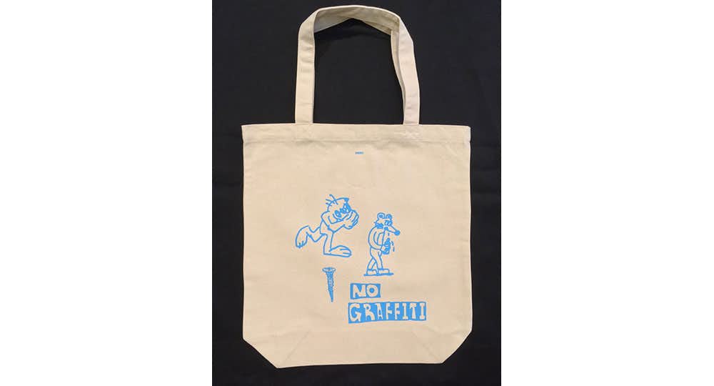 オリジナルのトートバッグにはコットン製のシンプルな素地を使用。シルクスクリーンやフォト転写など、様々な手法でアーティストの作品をバッグにプリントする。