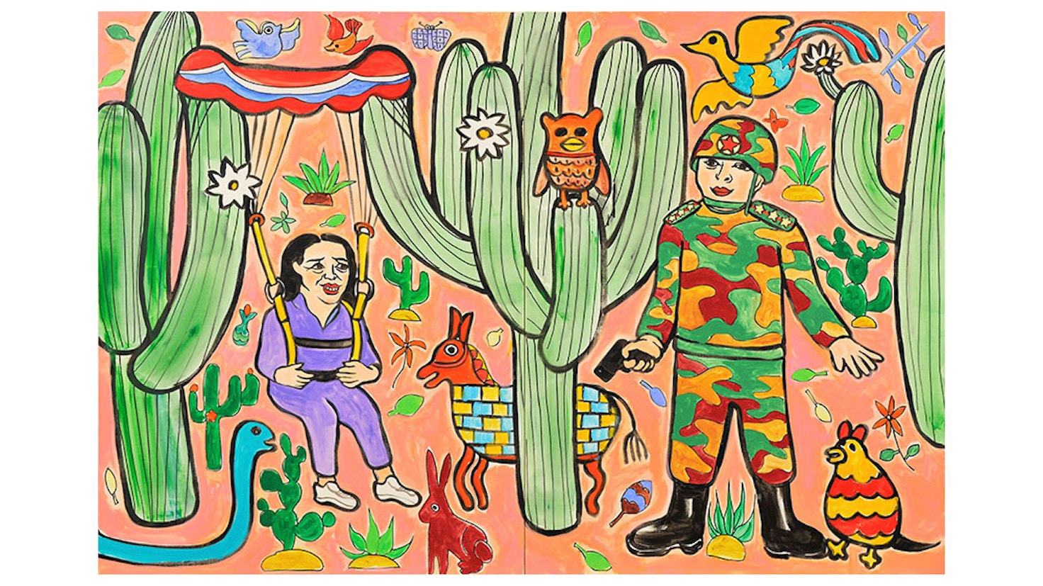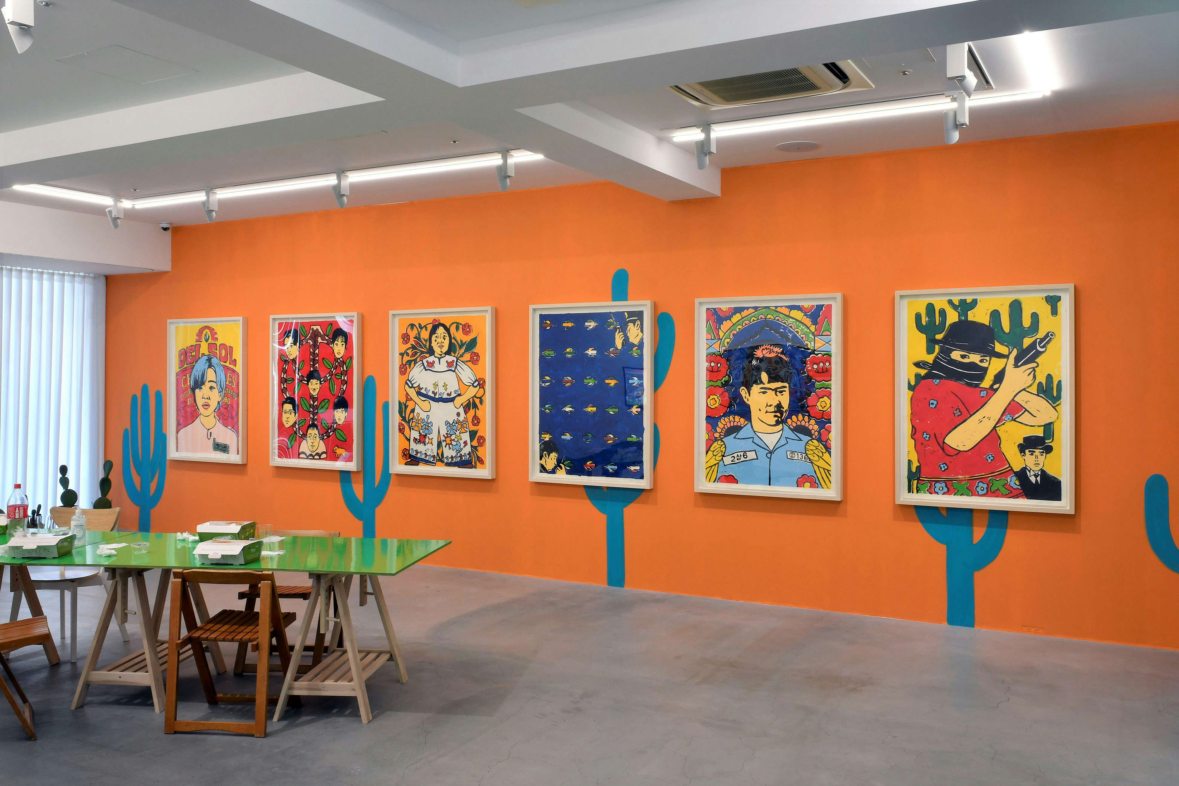 本展には、竹川がステイホーム期間中に魅了された韓流ドラマをモチーフにしながら、それをメキシコ風にアレンジした新作ペインティング、ドローイング、木版画、そして「AMIGOS」のパフォーマンス映像を公開。「AMIGOS」がメキシコ風のいで立ちで、複雑な感情が入り混じった日本と韓国の関係に明るく分け入る。