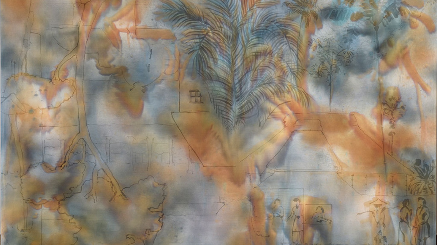 1979年千葉県で生まれた横内は、2007年に同大学を修了して以後、数年間日本で作家活動を続けたのち、14〜19年までインドネシアに在住。横内は「文化的接ぎ木」をキーワードに、様々な文化的・歴史的背景を持つイメージをメディウムによって画面上に転写し、下地処理をしていないキャンバスに図像を画面上で再接続する絵画作品を制作してきた。その姿には、本企画で取り上げる明治期の作家たちが、模写による学習から始めて、自らの表現を模索していった様が重なるようでもある。