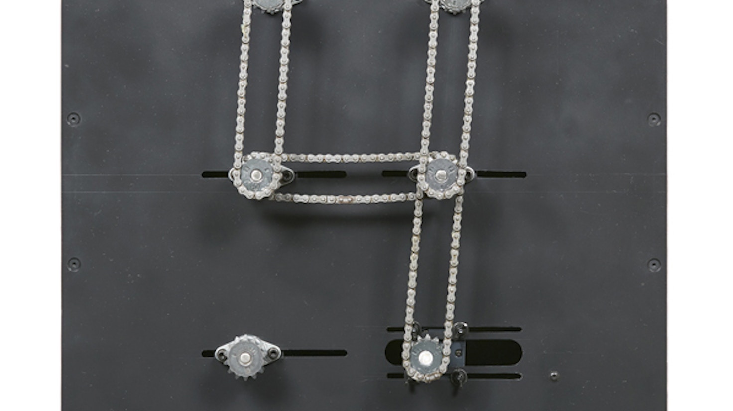 本展では、作品タイトルを表す文字、ハートや星、矢印などの身近なシンボルを象られたチェーンが延々と一定の速度で動く機械じかけの作品群「マシーンシリーズ」(2010-)より「0-9」と題し、かねてより温めて来た構想を実現。