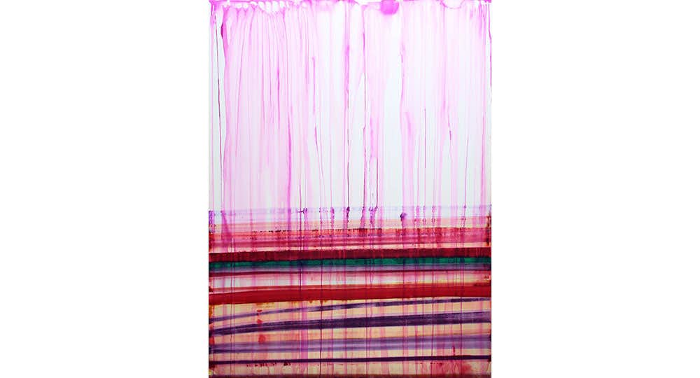伊藤は、従来の絵画にない異質な要素を取り入れて作品を制作。近年は、自身が「穴」と認識している水玉によって絵画上に変化をもたらす試みを行う。