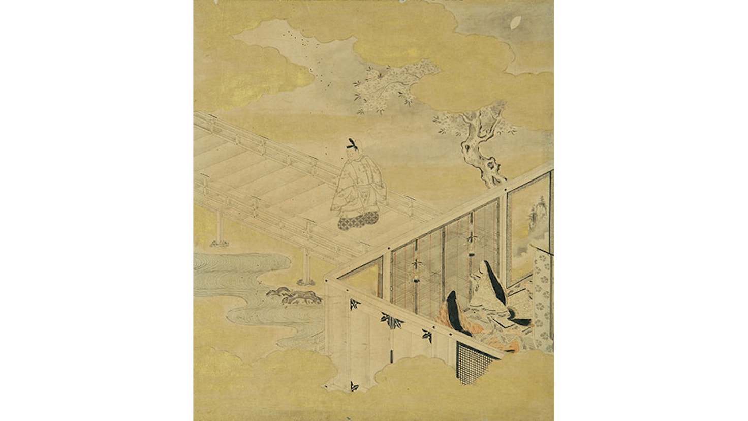 水墨画では、長沢芦雪が巨大な画面に中国の詩人・蘇軾が長江の名勝で遊ぶ様子を描き、その奔放で卓越した水墨技を発揮した《赤壁図屏風》(重要美術品)や、桃山時代に鷹図を得意とした曾我直庵の系譜にあると考えられている曾我宗庵筆の《鷲鷹図屏風》などを展示。いっぽう白描画では、『源氏物語』の名場面をもとに江戸時代のやまと絵の画家・住吉具慶が制作したとされ、モノクロームに色や金も加えた作品《源氏物語画帖》、復古大和絵派の冷泉為恭(れいぜい・ためちか)が、均質な墨線を本質とする白描に、流麗な動きを取り入れた《納涼図》などが展示される。