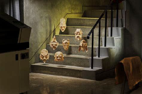 作品に使われる素材は、和紙、洋紙、コート紙など様々。また造形のモチーフとなる顔は、有名人、身近な人物、歴史上の人物、想像上あるいは伝説上の人物など、すべてにおいて制約を設けていない。