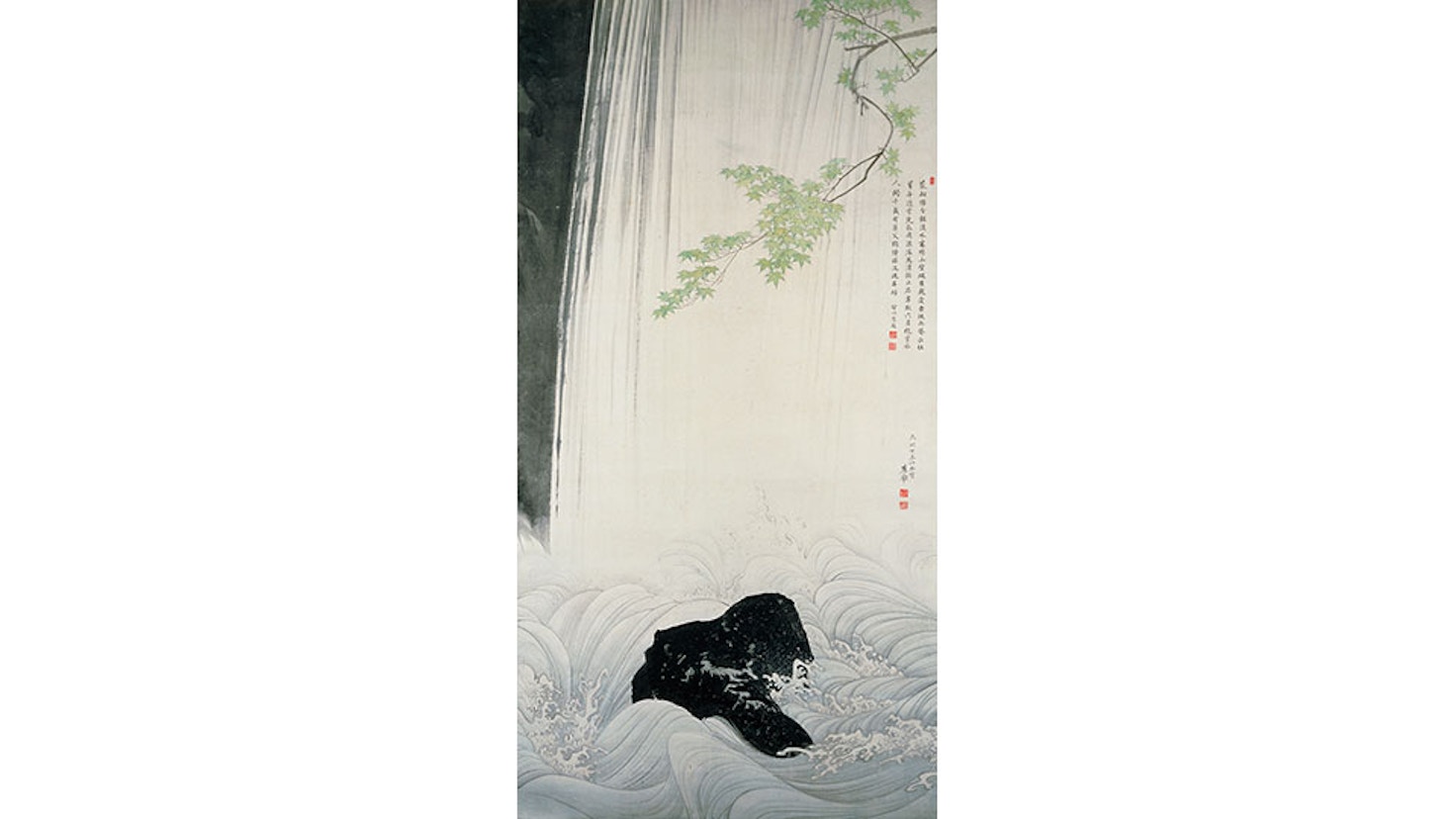 後半では、持ち主の趣向を感じさせる《旅枕花入(たびまくらはないれ)》など、やきものの多彩な表情に注目する「第4章:景色をさがす」、現代では縁遠くなってしまった和歌を楽しめるよう解説する「第5章:和歌でわかる」、そして「第6章:風景にはいる」では、風景画に描かれ、絵のなかの物語を見る者に想像させる「点景人物(てんけいじんぶつ)」を案内人として、歌川広重、池大雅、雪舟などの作品を展示する。