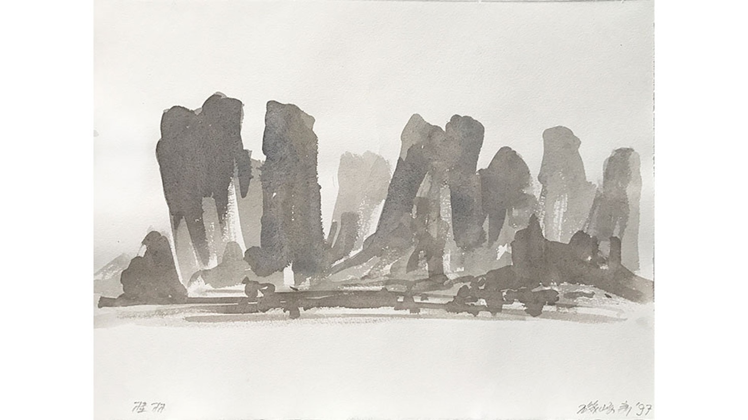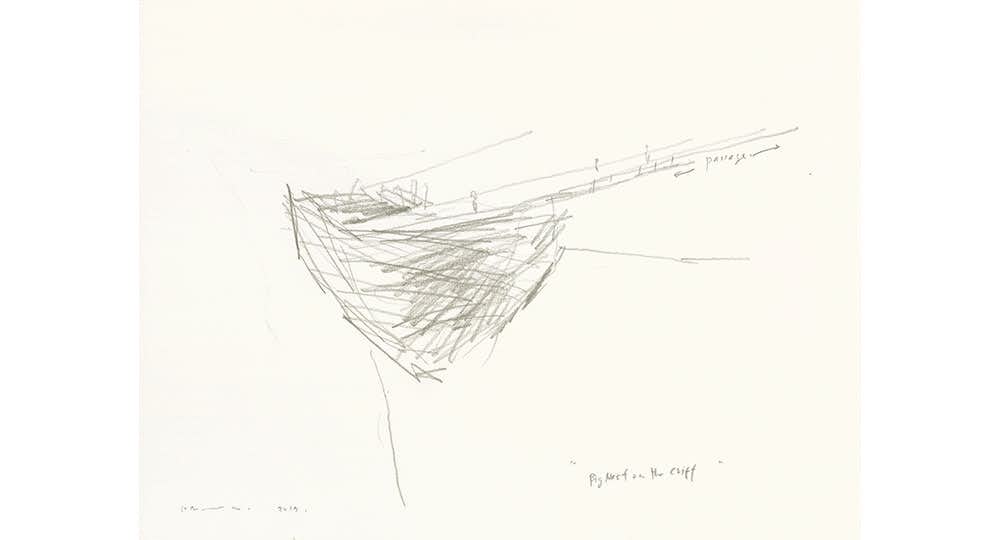 建築のみならず演劇、音楽、評論、思想など分野を横断して活動する磯崎新。本展では、建築家にとって思考のプロセスにおける最初の産物であるドローイングから、磯崎が1997年に初めて旅をした中国・桂林の岩山を船の上から描いた、マンハッタンの高層ビル群を想起させる水彩画などを展示する。
