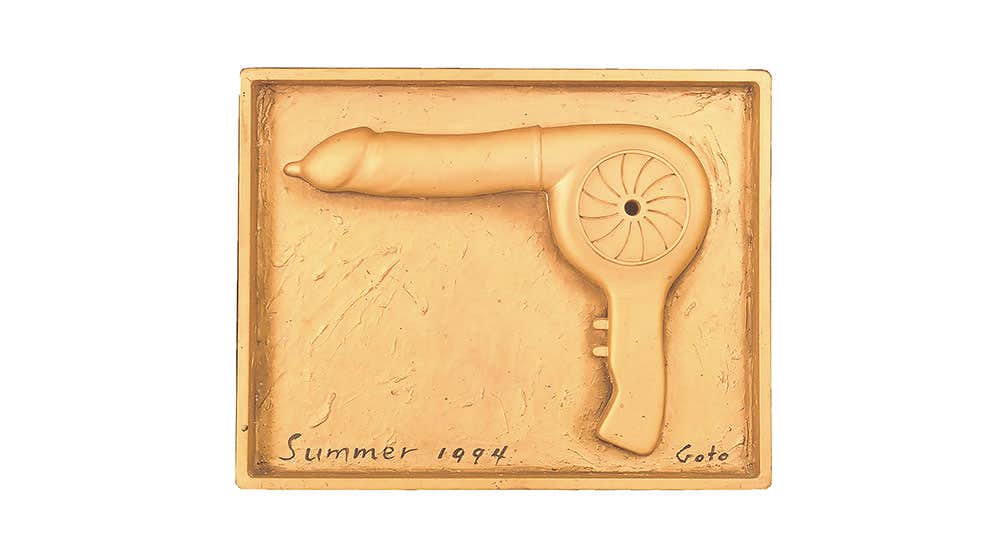 後藤は主に木を用い、スーパーリアリズムの手法で完成度の高い半立体作品を制作。ポップでキッチュな作風とは裏腹に、非常に几帳面な仕上がりの作品は、見る者を引きつける。