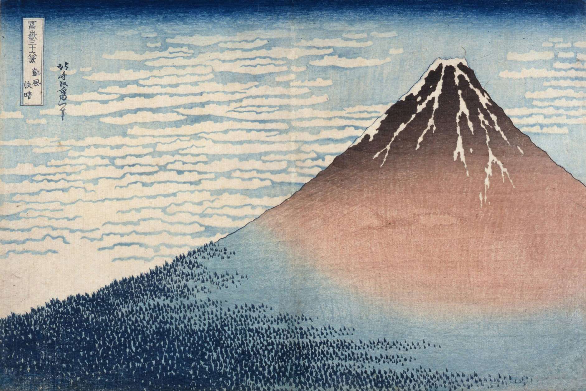 葛飾北斎(1760〜1849)の「冨嶽三十六景」は、様々な場所から望む富士を、人々の暮らしとともに描写した浮世絵風景版画。富士信仰の盛行を背景に、天保2(1831)年頃より西村永寿堂から刊行された。