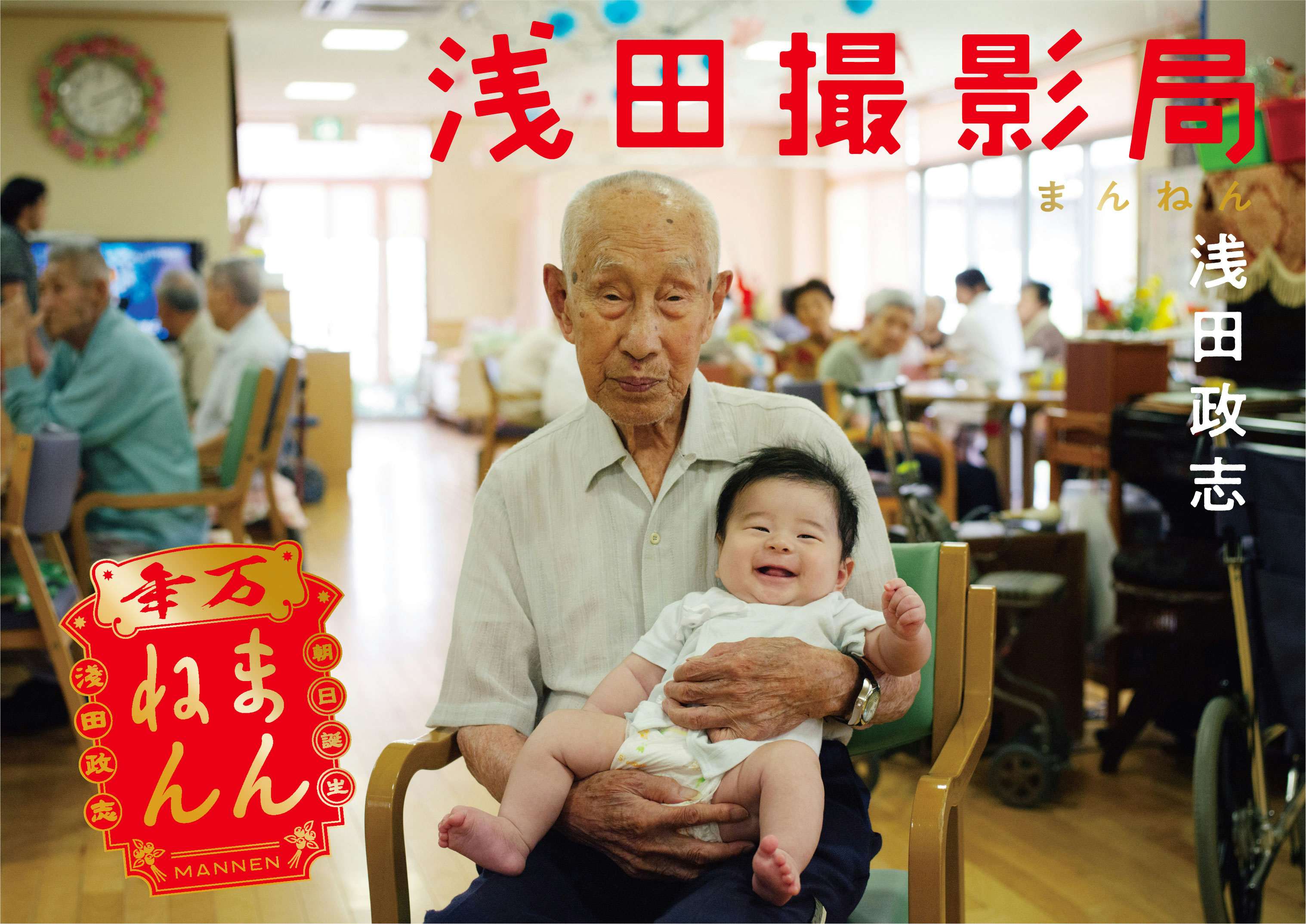 新作「浅田撮影局 まんねん」では、浅田自身が地元の撮影局の二代目に扮し、家族の力を借りながら、息子の「朝日」を被写体とした写真を軸に、家族写真/記念写真の新たな可能性を追求。「千年、万年と末長く幸せに過ごしてほしい」と願う父親としての普遍的な願いを込め、息子の成長とともに変化していく、ほほえましさとめでたさにあふれた作品となっている。