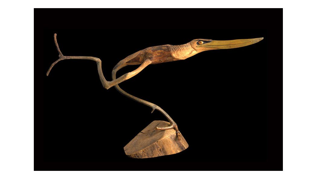 紹介作家のひとり、エフゲーニー・ラチョフは、動物を主人公にしたロシア民話の絵本で、日本でもよく知られている画家。シベリアで野生の動物に親しんで育ったラチョフは、動物のかたちや動きを知り尽くし、林で拾った木を鳥に見立てて彫刻を手がけた。本展ではそのなかから、いまにも駆け出しそうな鳥の作品《走る鳥》(1965)を展示する。
