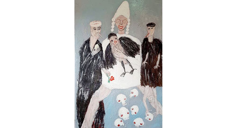ブスイ・アジョウは86年生まれ。タイ最北の地・チェンライで暮らす遊牧少数民族(アカ族)の職人の家に生まれたアジョウの芸術的実践は、作家自身の個人的な背景と密接につながっており、表現のなかに民族の口承文学を引用。アカ族にとって文化や民族の歴史、伝説、風習の伝達の手段であった口承文学が、近年の電気の普及による急激に変化した生活様式によって失われつつあるなか、アジョウはそのカケラを拾い集め、自身の現代の生活に織り交ぜながら絵画に表している。
