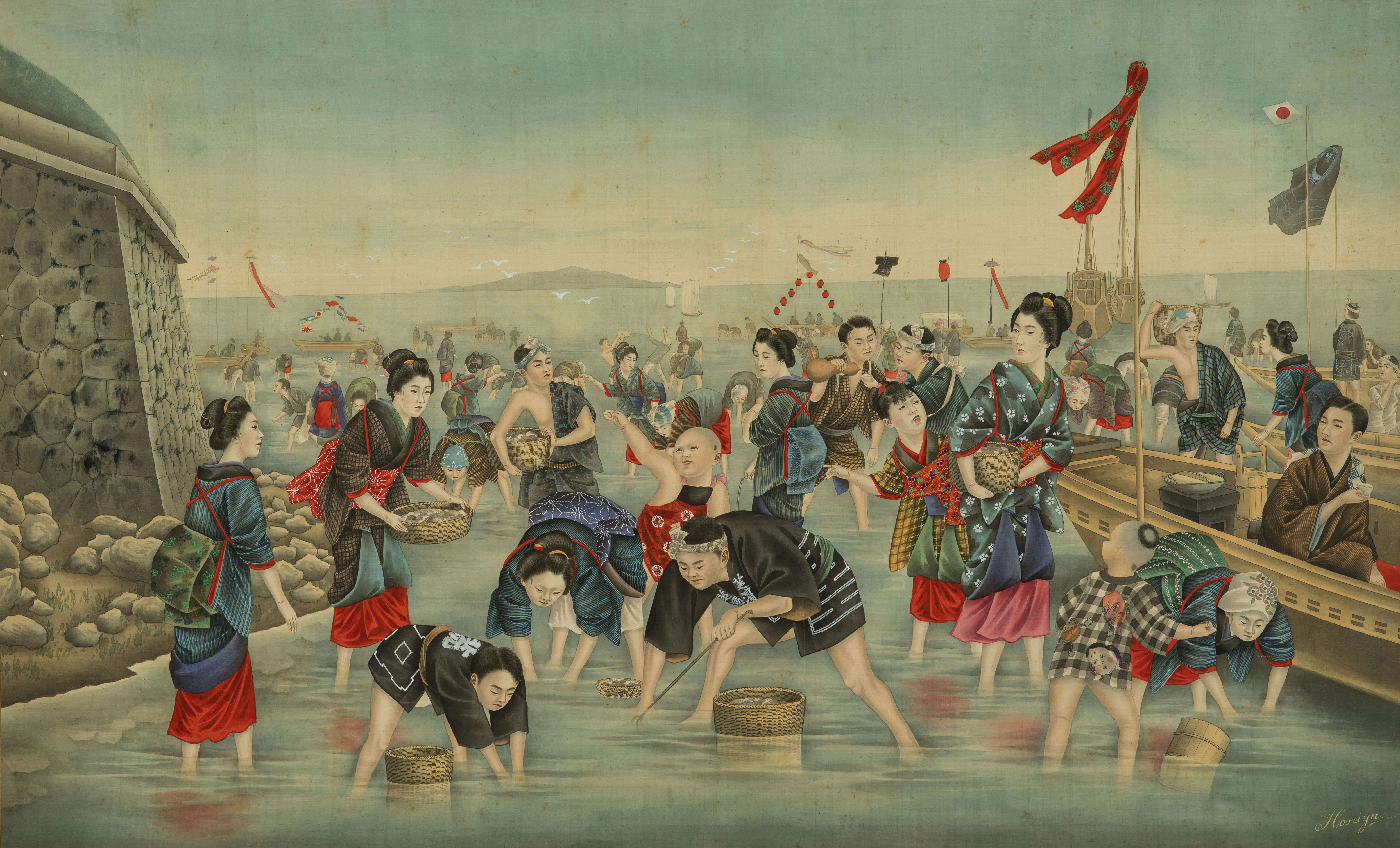 嵯峨嵐⼭⽂華館では「忘却にも負けず」と題して、かつては⾼く評価されていたにもかかわらず、時の流れに埋没し、いまはあまり知られていないという悲運に⾒舞われた画家たちにフォーカス。江戸時代に、現在の金沢で活動した岸駒(がんく、1749もしくは1756〜1839)や、浮世絵と洋画の両方を習得した五姓⽥芳柳(ごせだ・ほうりゅう、1827〜1892)、また近代京都画壇を牽引したひとり、⼭元春挙(1872〜1933)など個性あふれる画家たちの秀作を展示する。