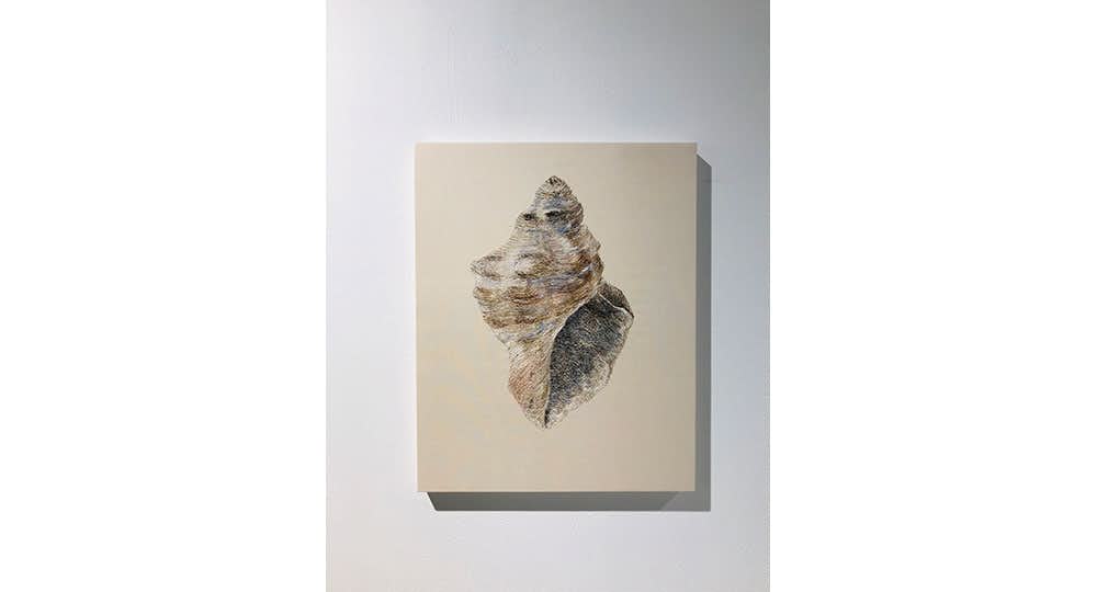 蝸牛は、貝殻や石といった自然のつくり出したかたちや色、模様に、太古の物語をひも解き絹糸で刺繍。波や間欠泉、新生児の瞳を被写体に撮影を行う井上の写真は、万物に必ず来る「終わり」を予感させる。後藤は、旧石器時代の洞窟壁画や19世紀の映像装置を源泉に、3Dプリンティングを用いて、時を立体的に見ることを試みる。