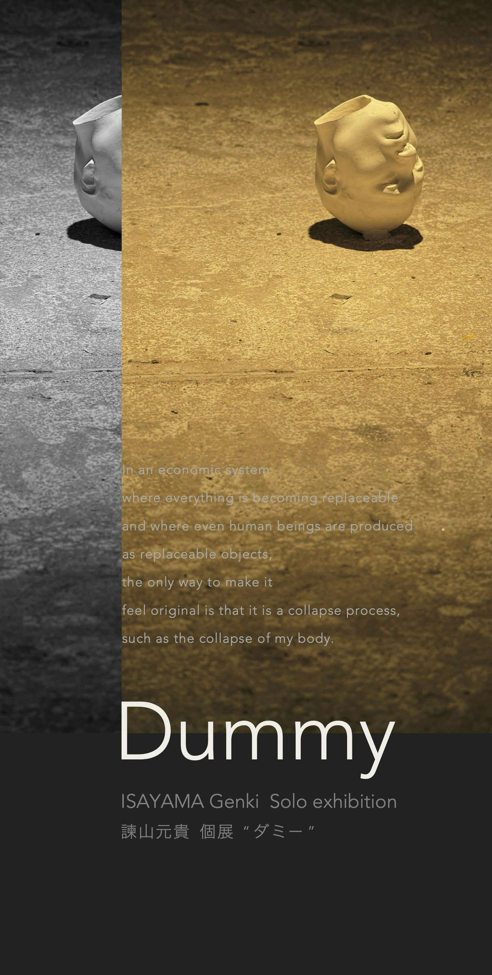 本展のテーマは、模造品やマネキンを意味する「ダミー」。オブジェ、映像、平面作品を組み合わせて互いが関係をもつひとつの空間をつくり上げ、複製可能なものの表面に対し、内側は唯一のものが形成されるという時間やほかとの関わりを、「崩壊」の現象を通して示す。